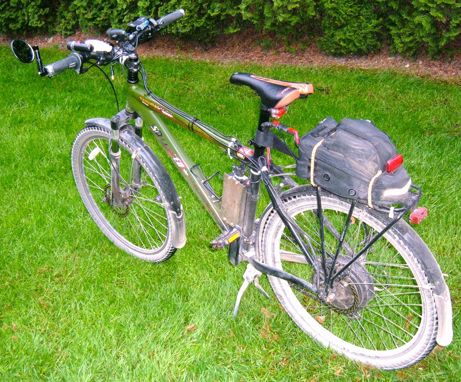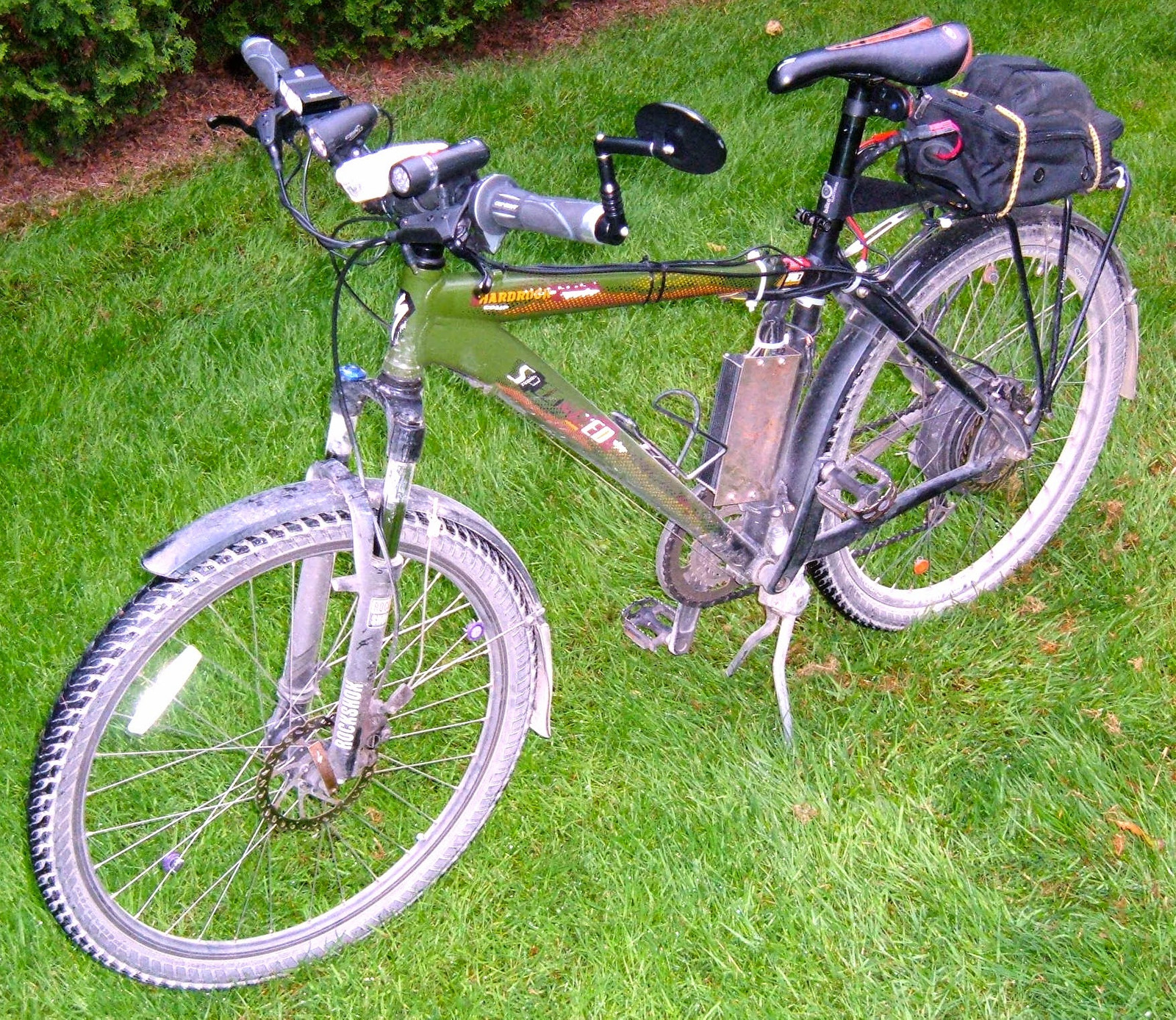 It’s built on a used 2007 Specialized Hardrock frame with 26” wheels, uses my existing battery pack, is driven by an HPC Thunderbolt motor/controller combination, and is built to be rock solid reliable. So far, so good!