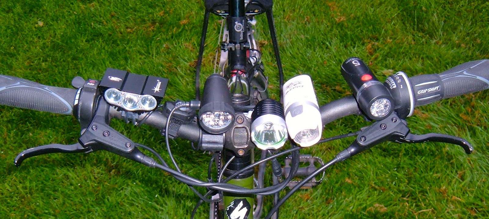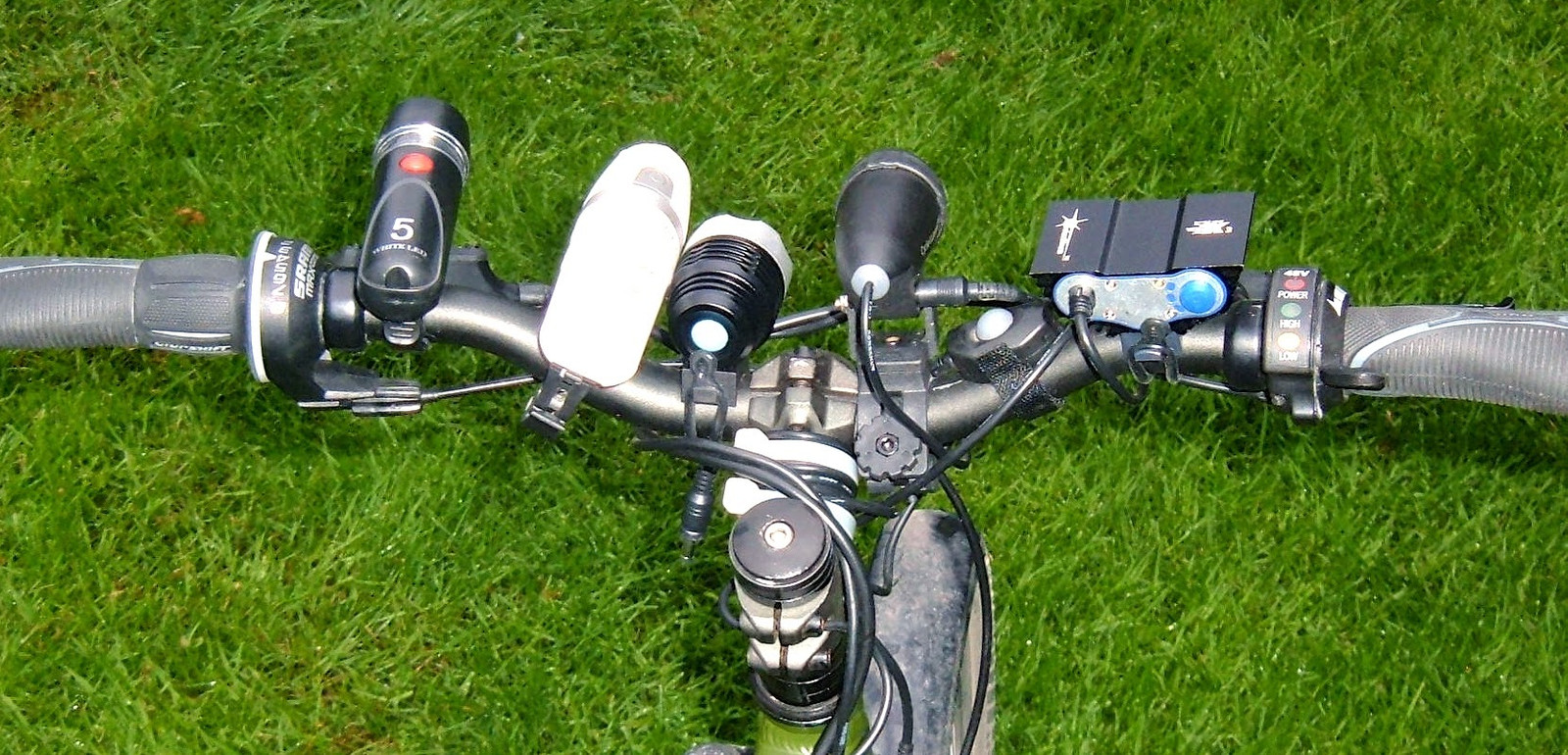 There are some scattered other lights mounted on the front bar that are for testing the reliability and lighting capability of various other cheap lights. I’ve lost a few to bad mounting brackets, and at this point, accept that if a light comes loose, it won’t survive coming to a stop on the road. Oh well.