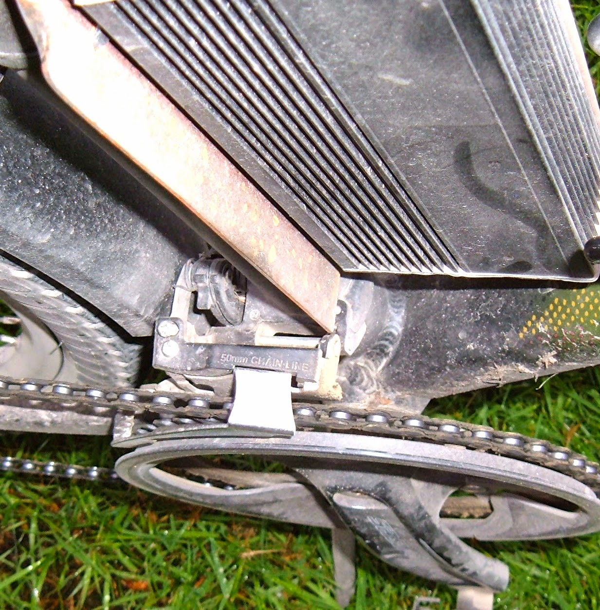 As far as riding goes, this bike rocks! It does exactly what I ask of it, and does it well. It pulls hard, climbs hills well, will cruise along on the throttle at 22-23mph with no effort on my part, has plenty of range for my round trip, and has been quite reliable so far. I typically cruise on the smallest rear sprocket (8), climb light to moderate hills with sprocket 7, stop/start in 5 or 6, and climb very steep hills in 3. I really have no need for the largest two gears in the rear, and the chain is badly crossed if I’m using them, so they mostly function as spacers. I keep them around in case the motor or battery dies and I need to climb hills.