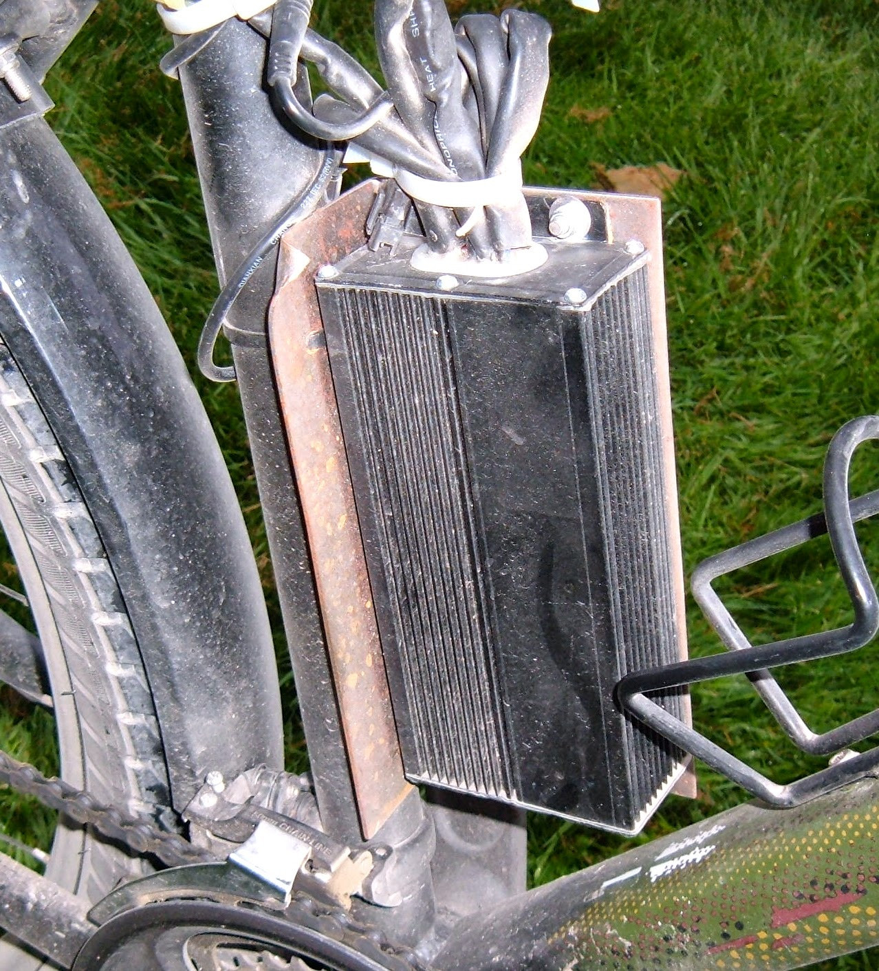 The controller is mounted in the center triangle, on some bent aluminum plate that the bike shop fabricated for me. It leaves the lower water bottle location clear, and keeps the controller more or less out of the road spray.