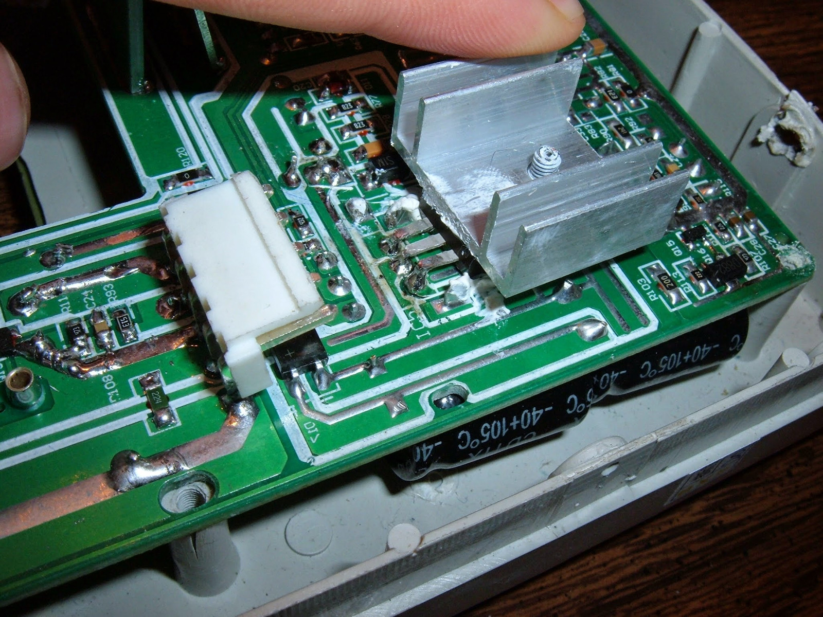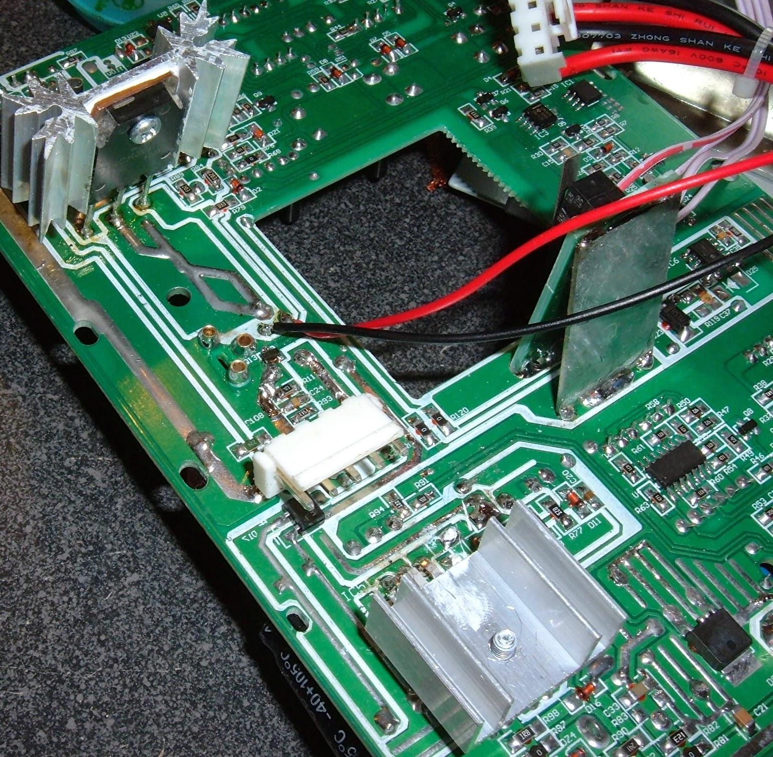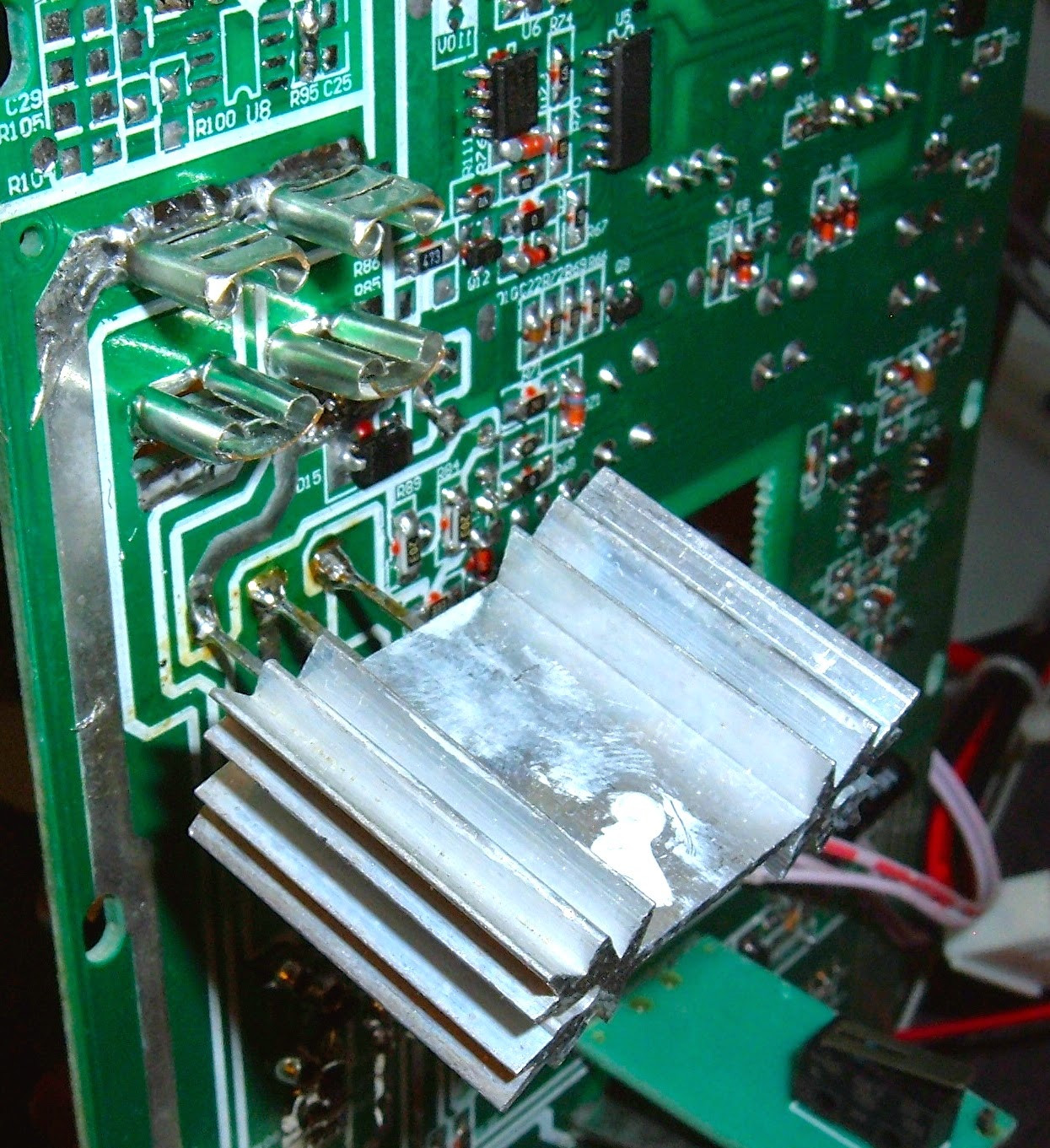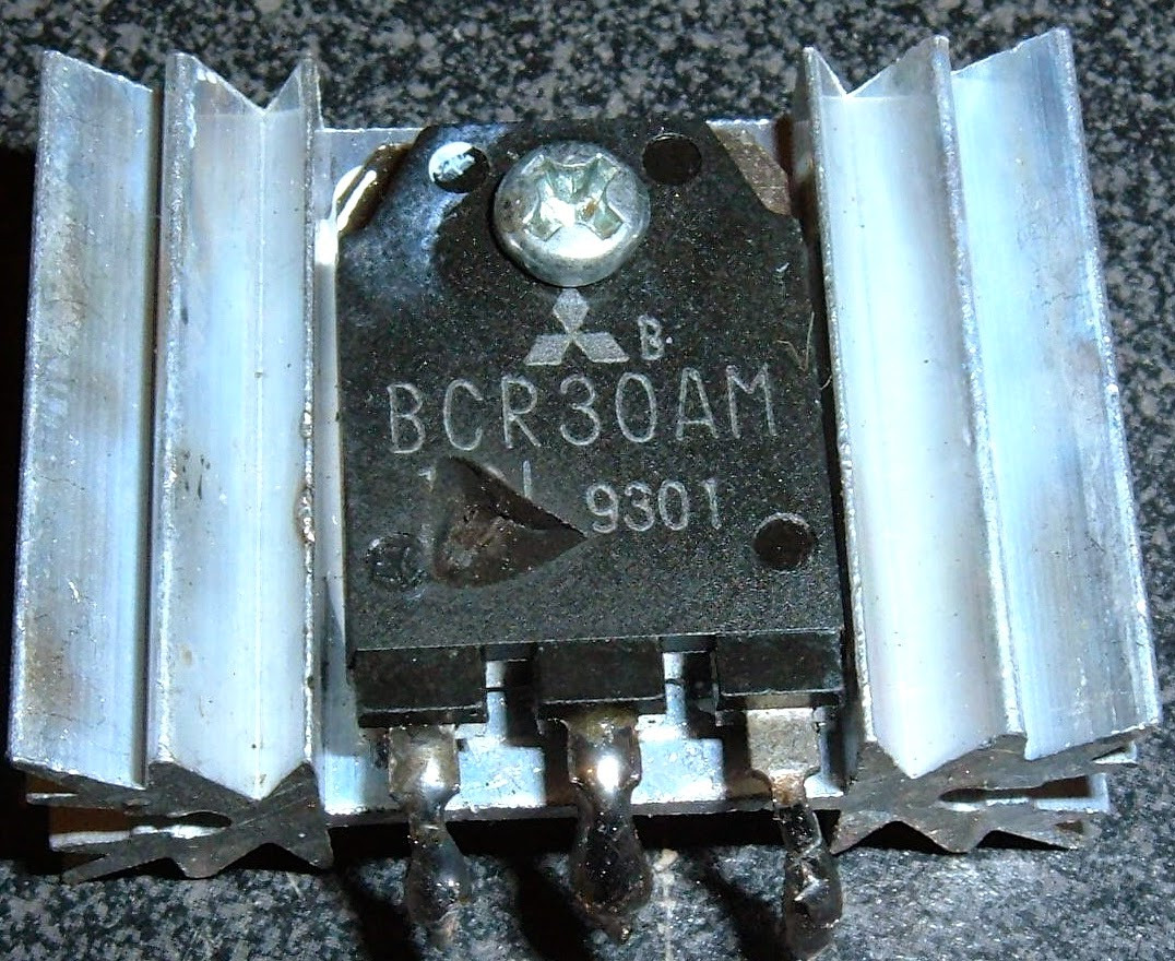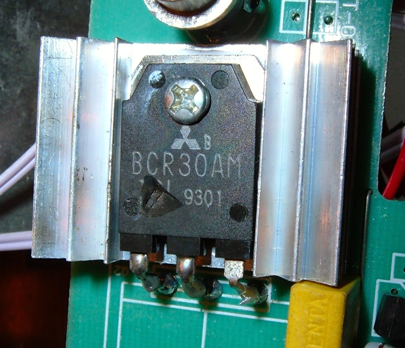 As far as repairs goes, this one is pretty simple. Remove the old triac (I just cut the legs to make it easier), move the heatsink onto the new one, resolder it out the backside of the board.