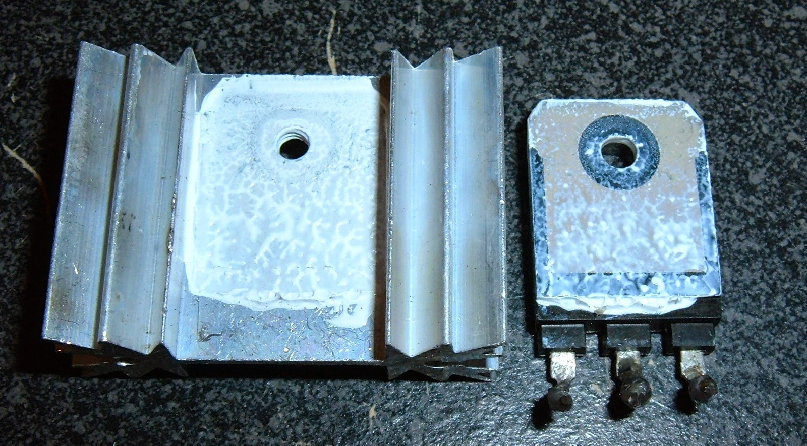 I was genuinely surprised to find thermal compound between the triac and the heatsink. I was expecting it to be dry, or at best, some thermal tape.