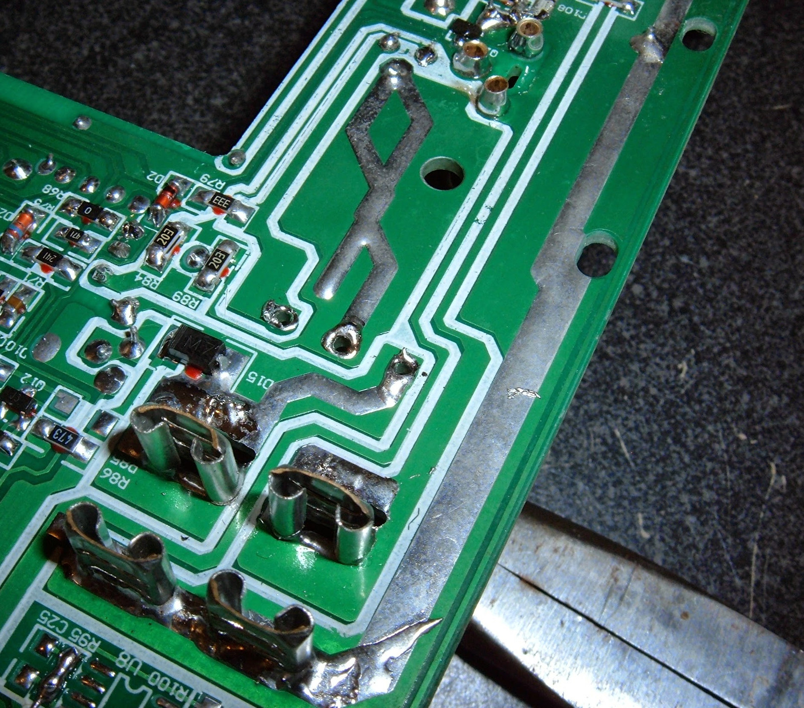 The front comes off easily enough. An inspection showed some pulled traces - this is, as expected, truly a thrown together piece of work.