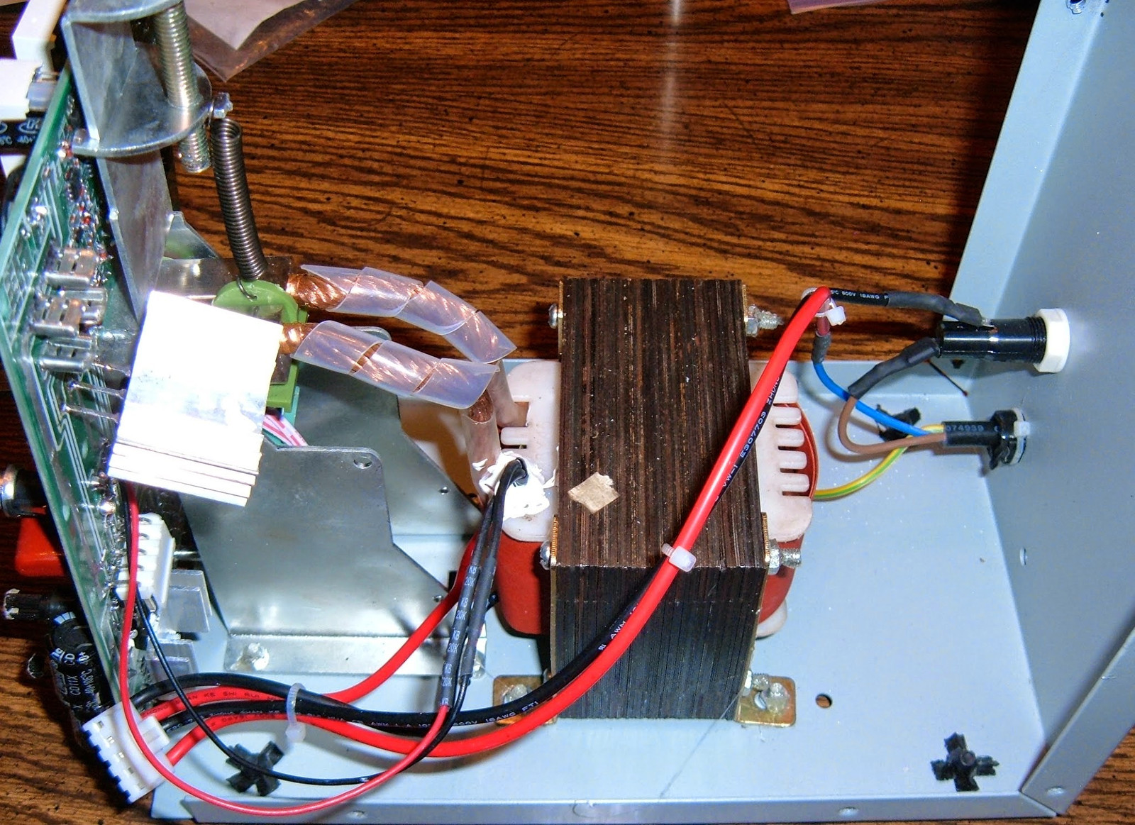 The case comes off easily enough, to show the transformer and the backside of the circuit board.