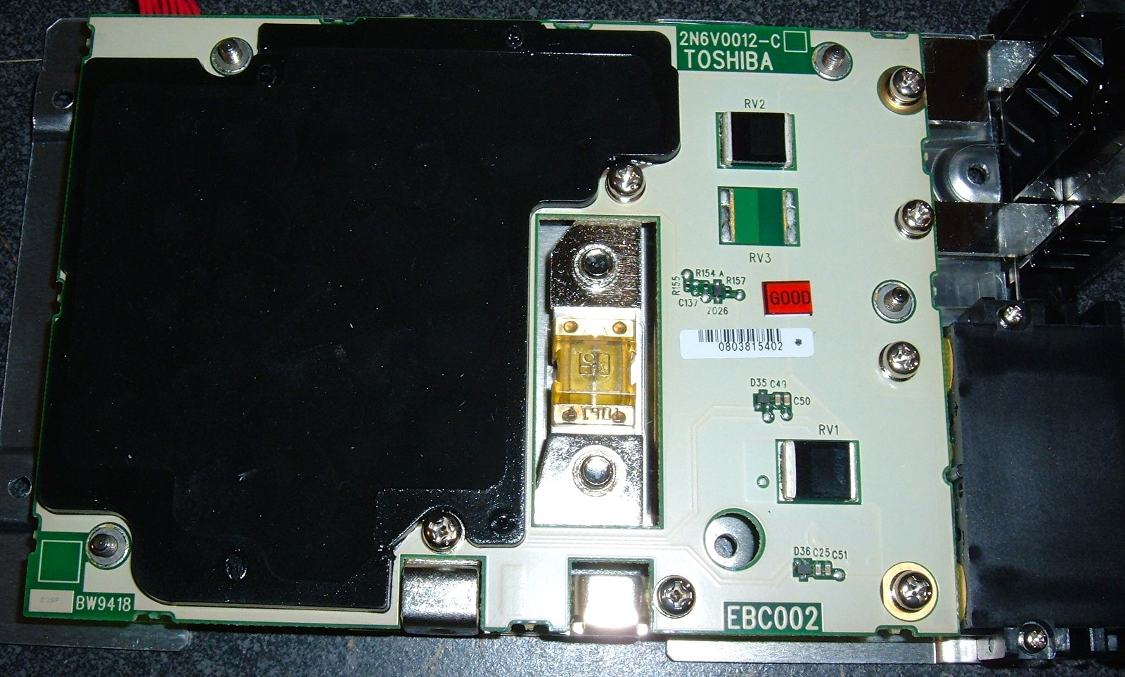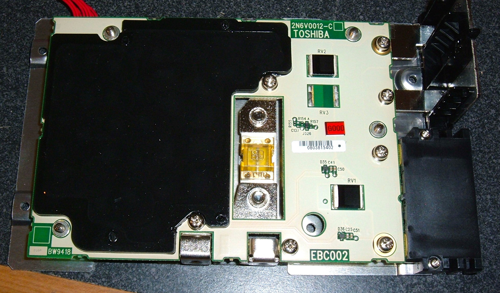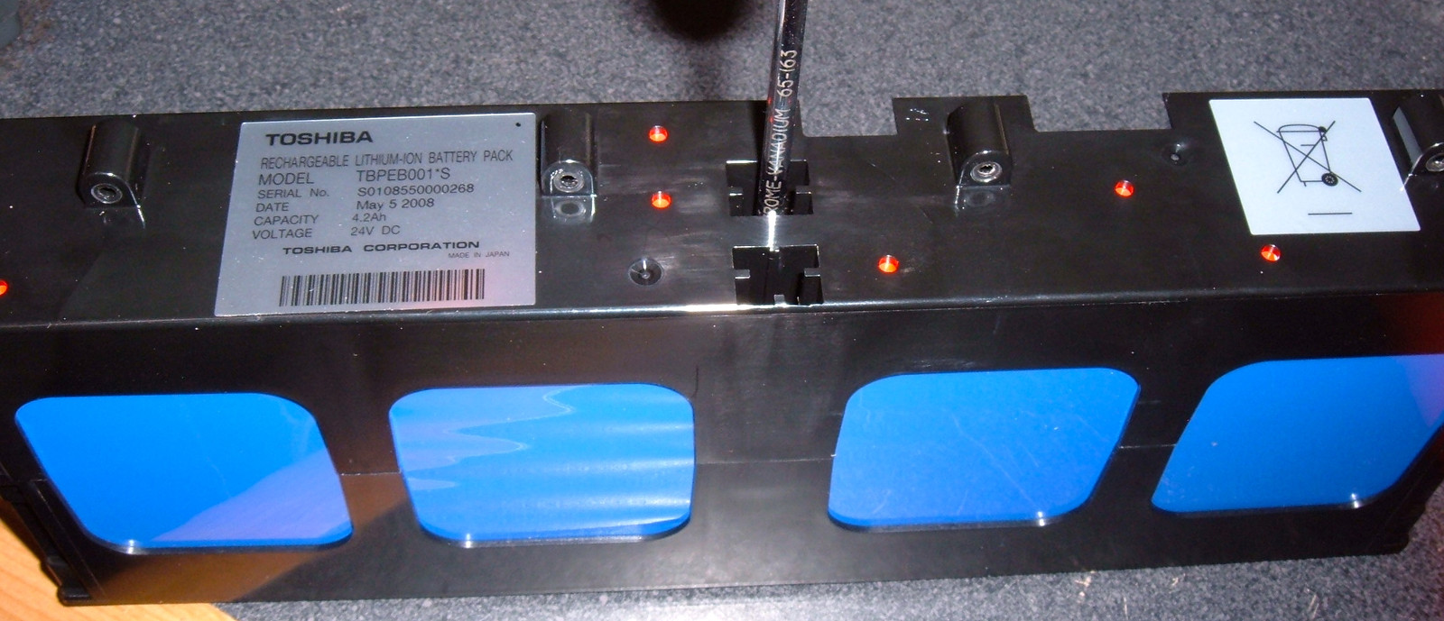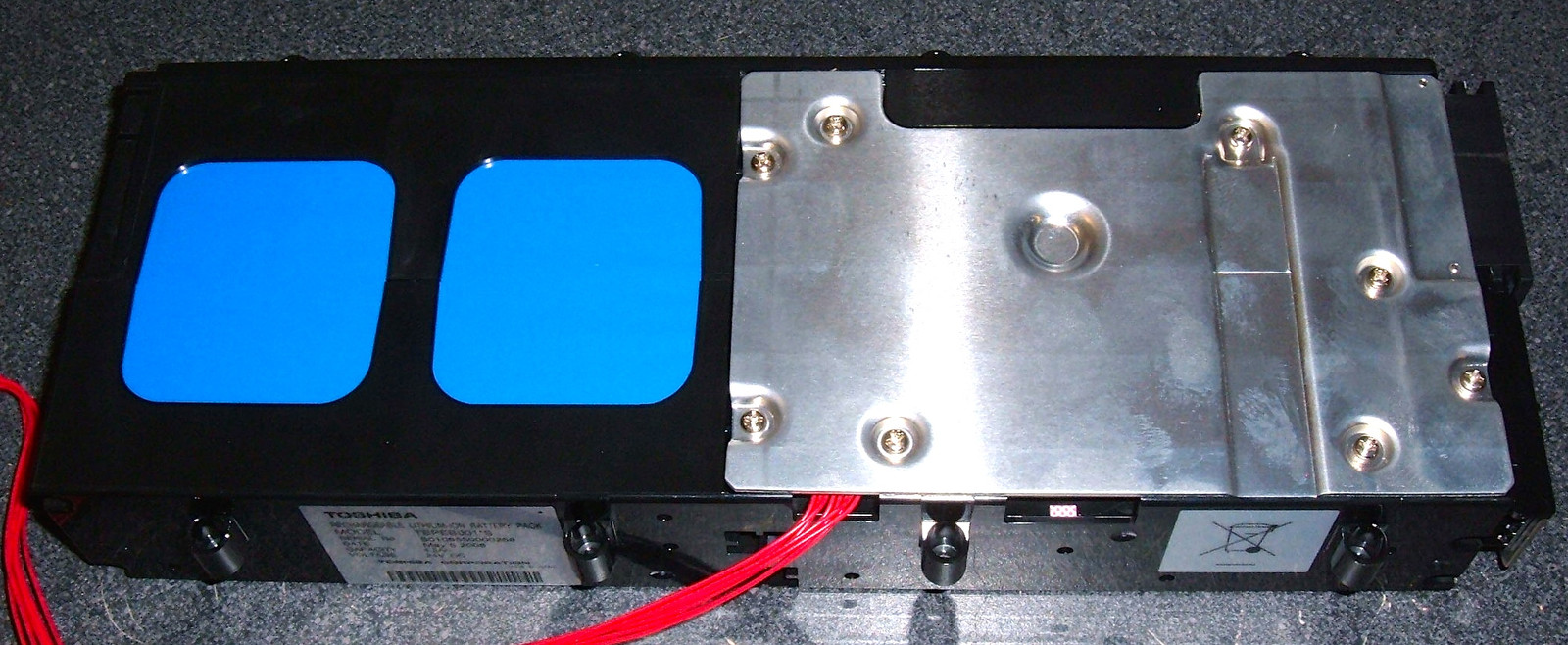 Once the inner pack is out, the label is visible, and the capacity checks out. 100WH of Toshiba Lithium Ion Battery. The pack is 7 years old and a month. I’d say I was impressed, but I’d only be impressed if it was still working, which is entirely possible, had it not been drained.
