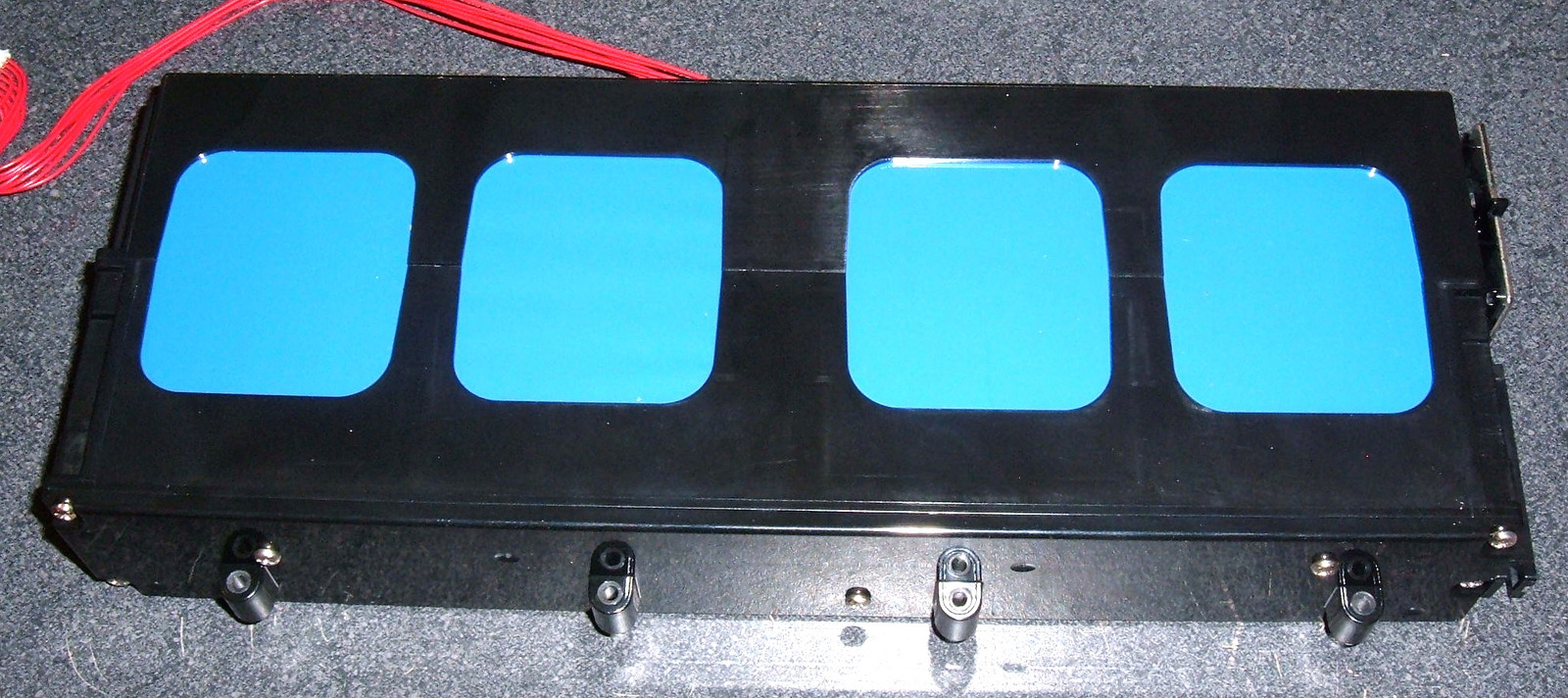 With the first wave of screws out, the back pops off, and… there’s another case inside. Held in by 8 more screws. That’s 14, for those keeping count. This is a very, very well protected set of cells. The little circuit board that runs the LEDs is visible as well, on the right.
