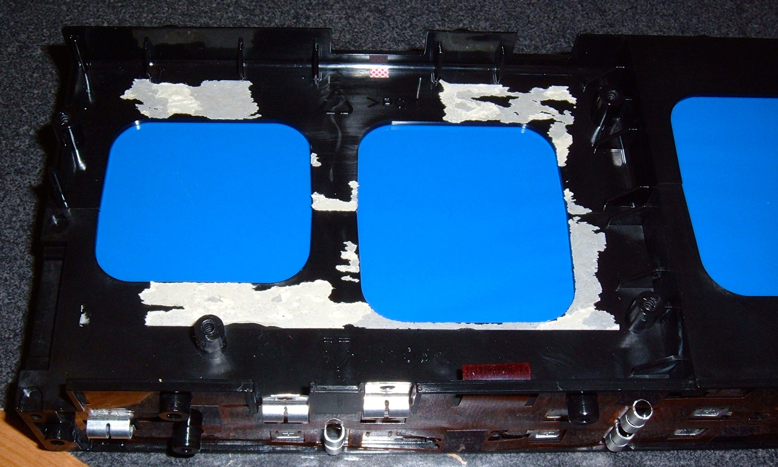 The underside of the inner pack has a very serious looking metal plate on it, held down with yet more screws (8 - up to 22 screws). Don’t worry - I’ll pop it open and see what’s hiding in there! You can also see the “Do not throw in the trash” label.