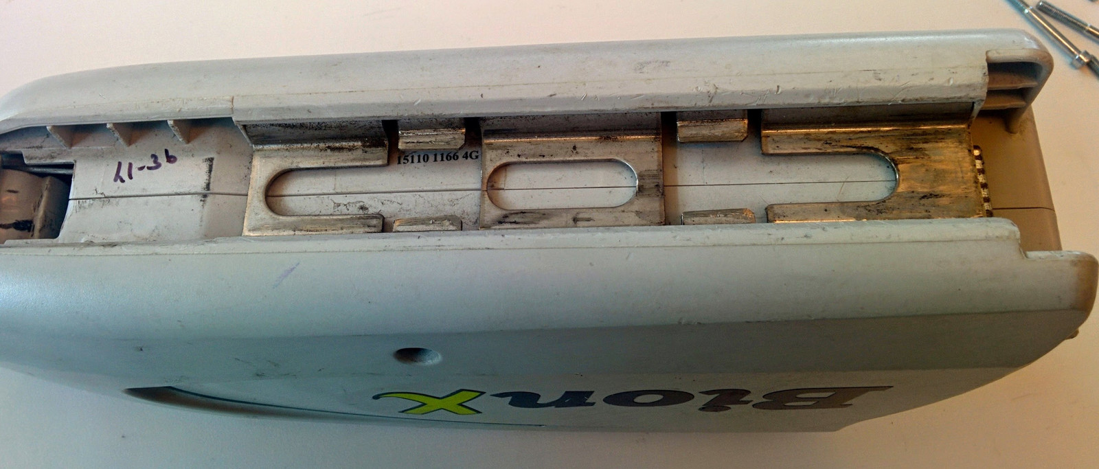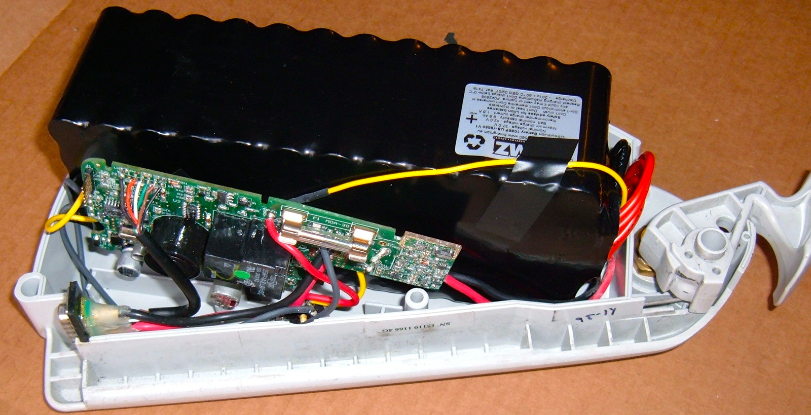 It’s also, apparently, somewhat self-balancing. This means that as cell state of charge increases, they charge somewhat less efficiently, so a set of high quality cells, matched from the factory, should stay reasonably balanced in operation. Given how dead this pack is, I can’t really speak to it’s balance, but that’s the theory, at least, and explains the lack of sense wires and the series-first construction. It’s a somewhat bold move, but I suspect BionX has done their homework here. Apparently the self balancing behavior is a side effect of the spinel manganese oxide chemistry - it’s a characteristic of this type of battery. So as long as the cells wear evenly (which they should, being in the same pack), balancing isn’t a problem!