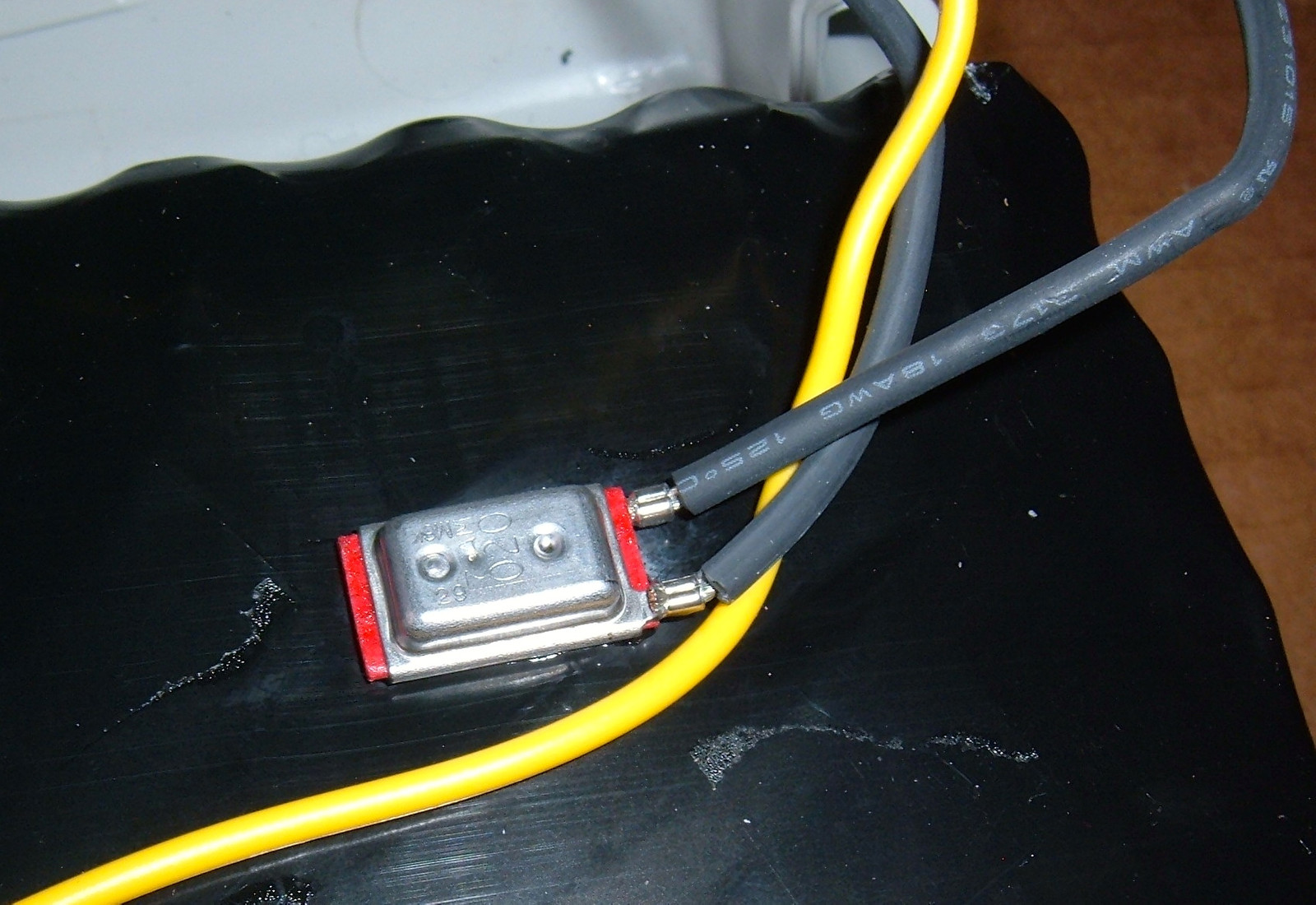 Back on the battery pack, in the middle of the ground wire, there’s what looks like a thermal cutoff or fuse glued to the pack. I assume this opens if the pack gets too hot, though I have no idea at what temperature, or if it’s resettable. If anyone has a few spares, I’d be happy to test them!