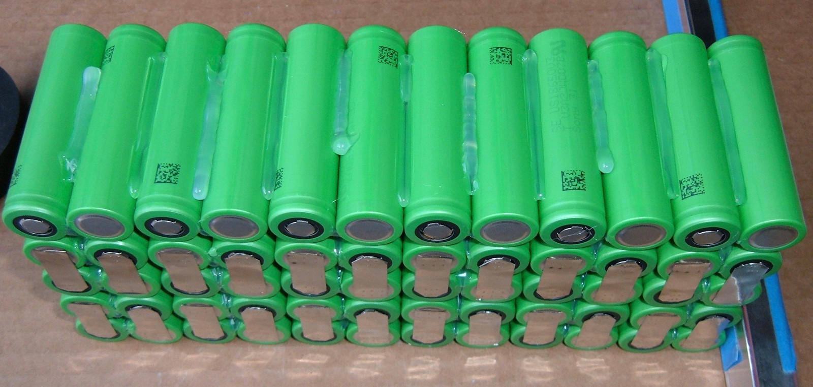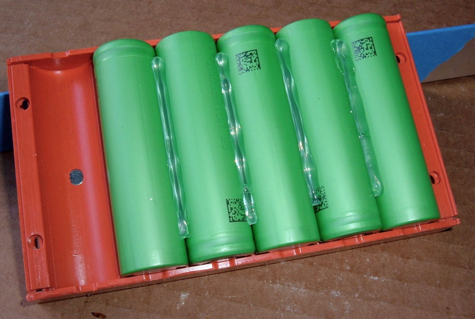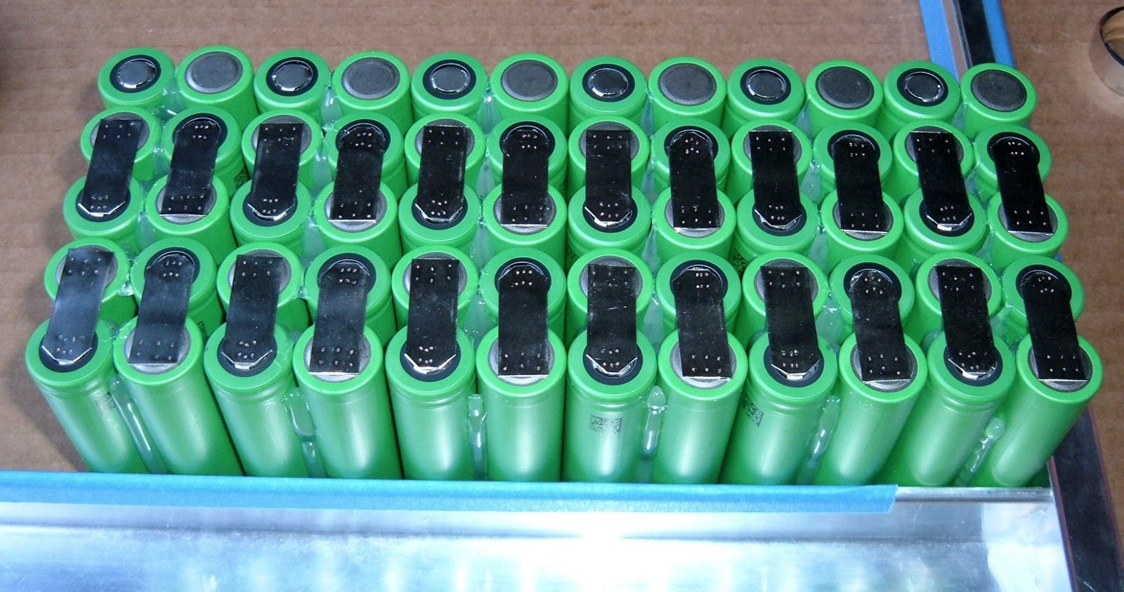 What this means is that until after the 2x5 packs are glued together, there’s no need to pay attention to how things are assembled, other than to ensure that positive/negative terminals are oriented properly. You can’t mess it up yet!
