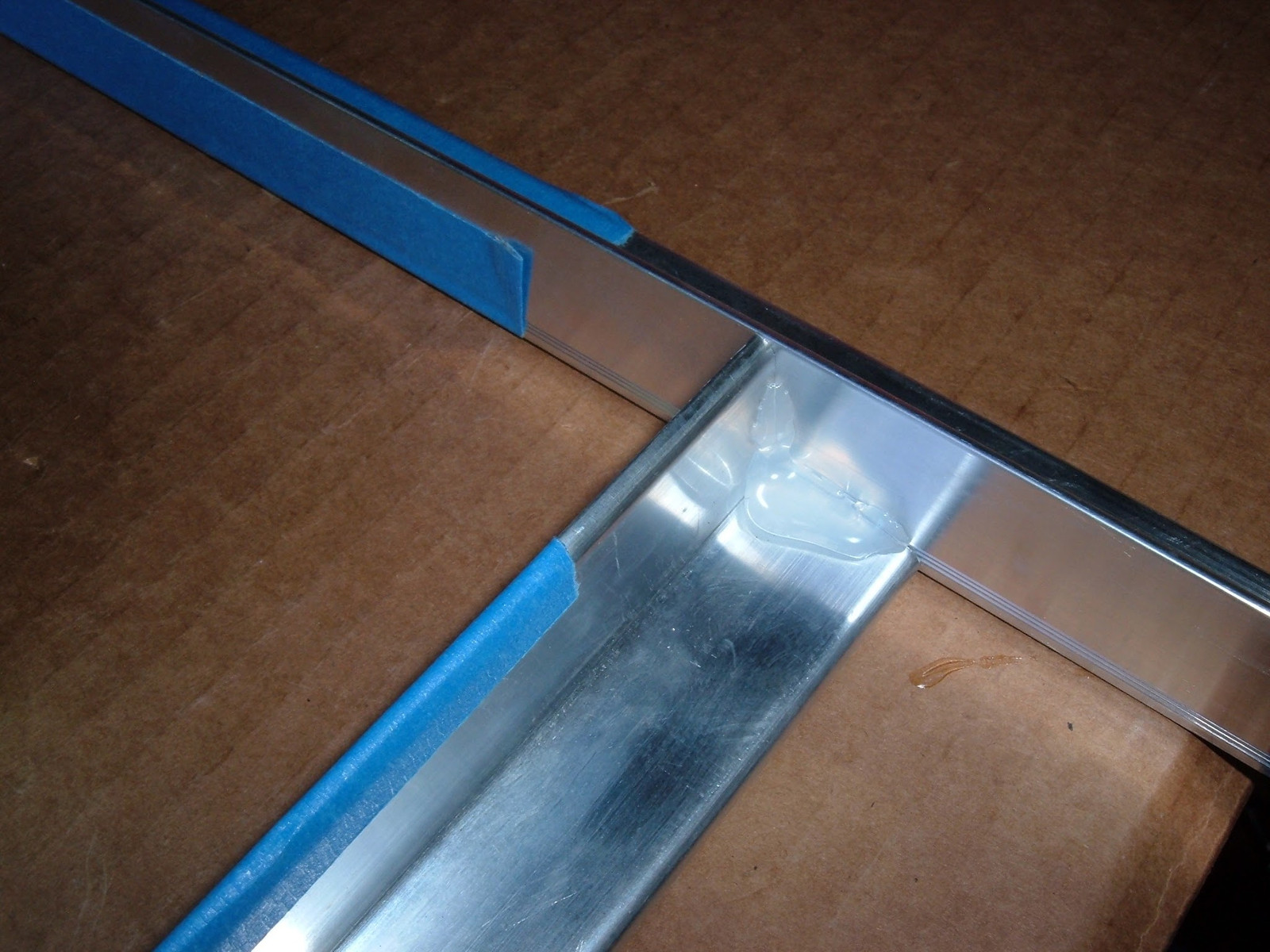 The right angle alignment is a bit tricky to eyeball, so I used some scrap angle aluminum I had laying around to build a right angle jig. Hot glue solves many problems!