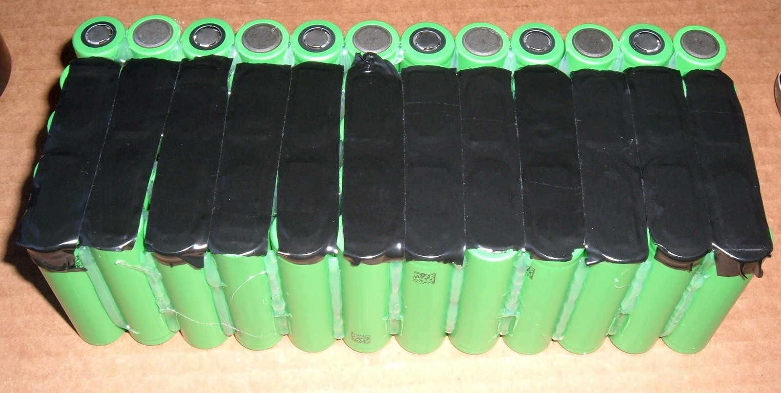 The old pack was built out of 60 Sony US18650V cells in a 10S6P configuration (strings of 10 in series, then 6 of those in parallel). Each US18650V cell is rated at 1600mah (1.6AH), for a total pack capacity of (6 * 1.6) = 9.6AH. At least until it went flat (apparently, it will beep at you for quite a few months before finally dying). These cells are a LiMn chemistry, which is a decent blend between safety and density. They are also mildly self balancing, which is how BionX gets away without a BMS on this pack (they just monitor bulk voltage - high quality cells + slight self balancing = <3).