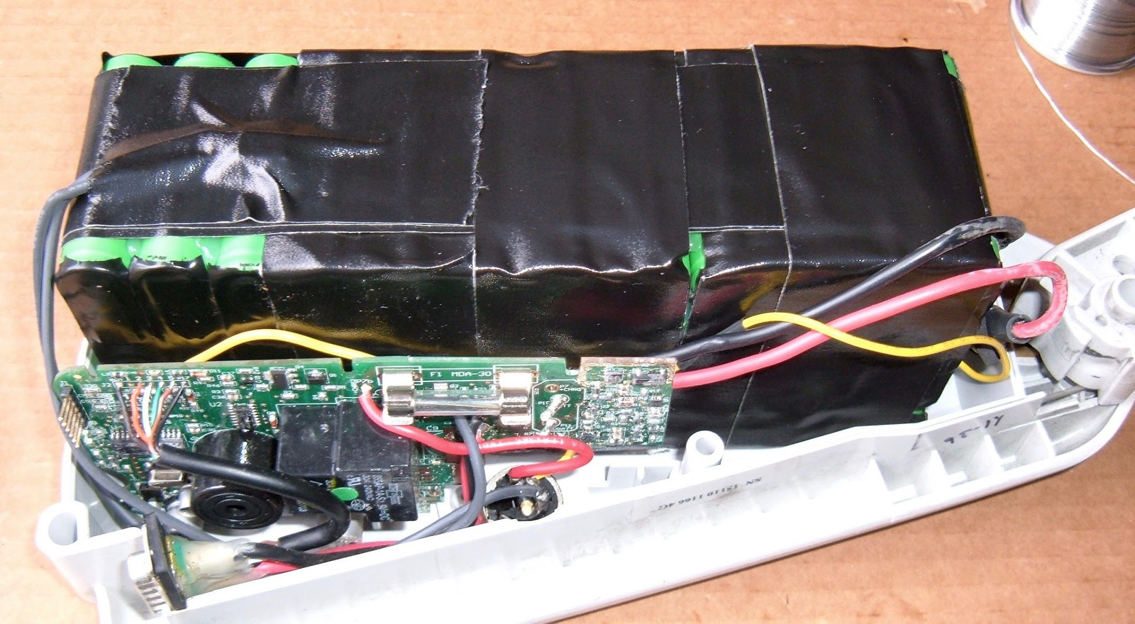 Repeat the above very carefully for the positive wires (do not short happy fun battery pack). This completes the electrical wiring of the pack.