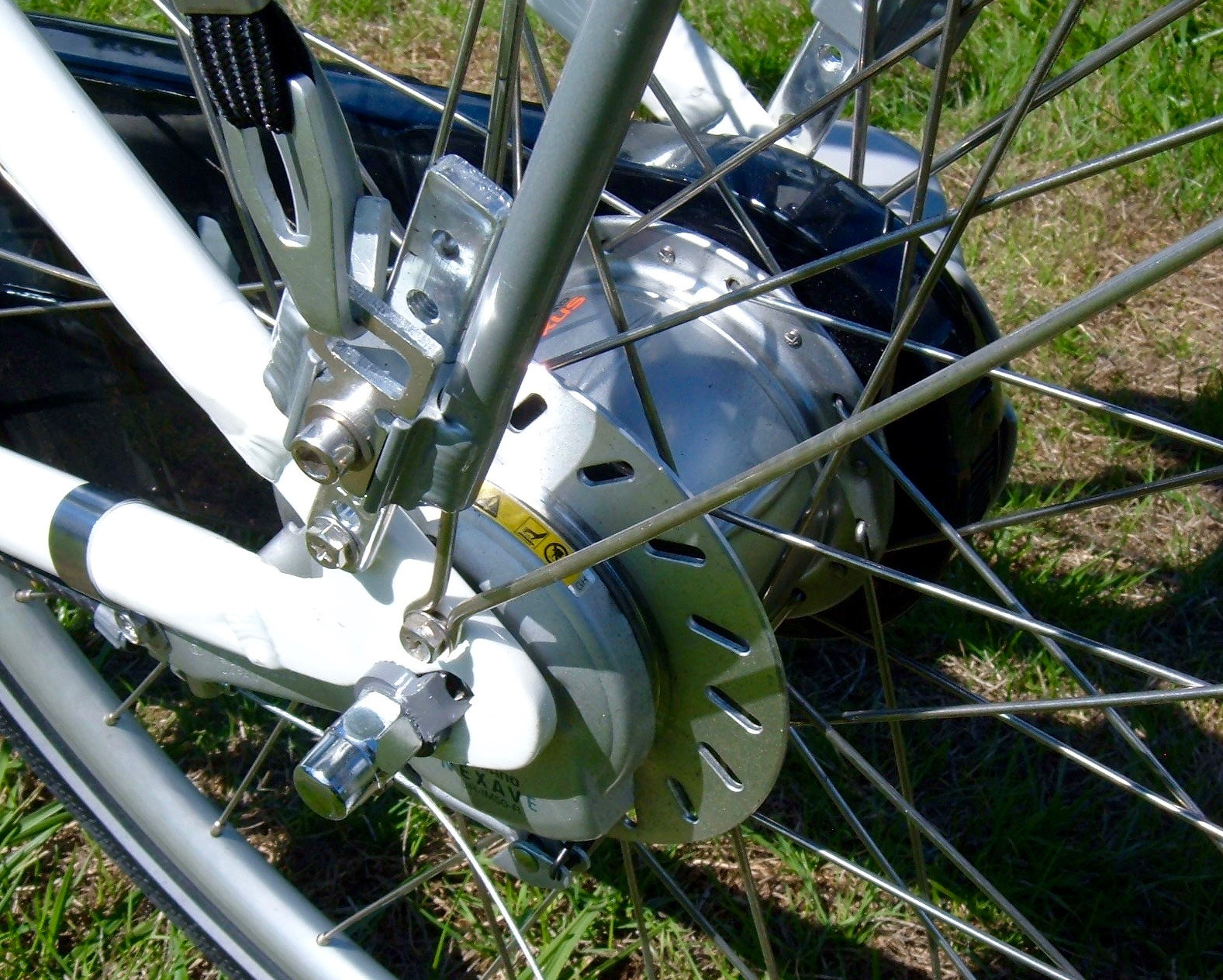 Below the wheel lock is the generator. For the lights. On an electric bicycle. _sigh _Also, you’ll see more zip ties, holding the generator wiring in place.