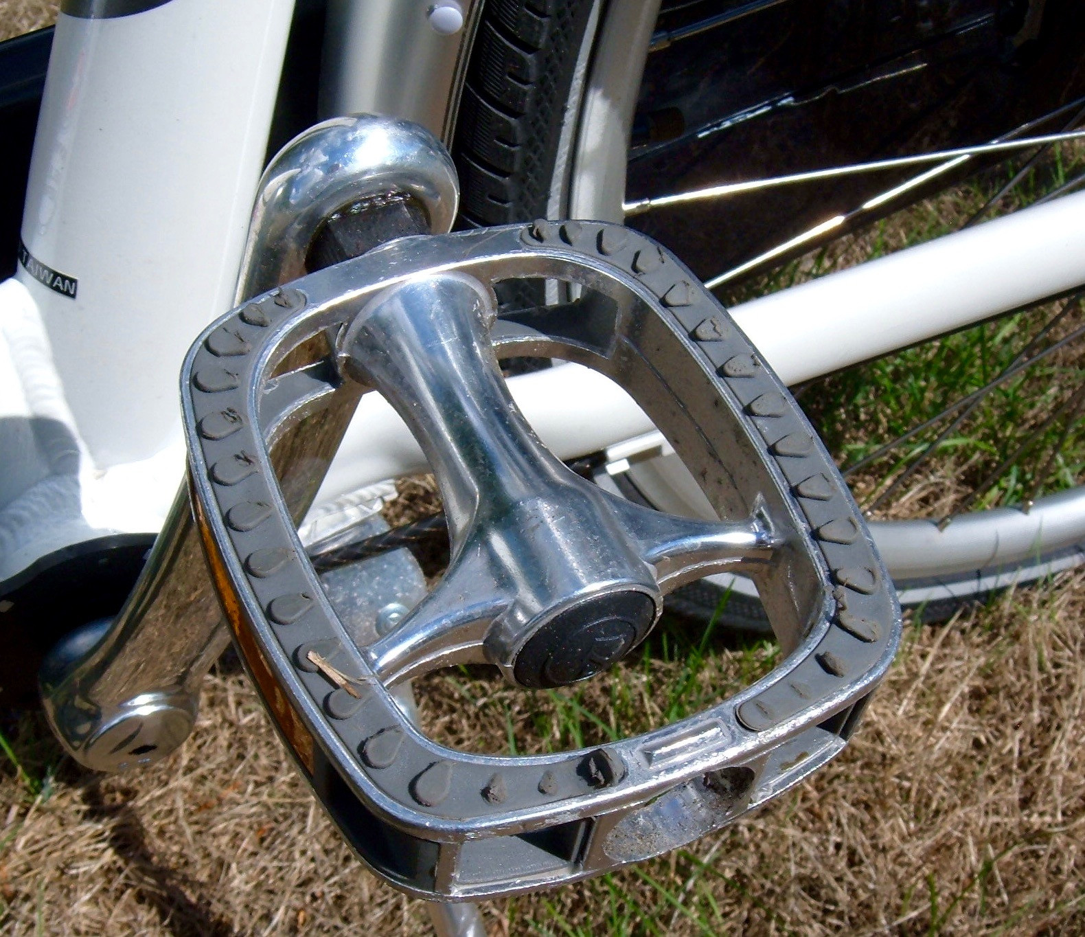 I’ll start at the front interface to the drivetrain. The pedals are nice metal units, with a grippy rubber strip around them. These are definitely easy on the feet or shoes, and are perfectly fine for barefoot riding, should you care to do so. They seem to be quite strong units, and I wouldn’t expect any problems with them, ever.
