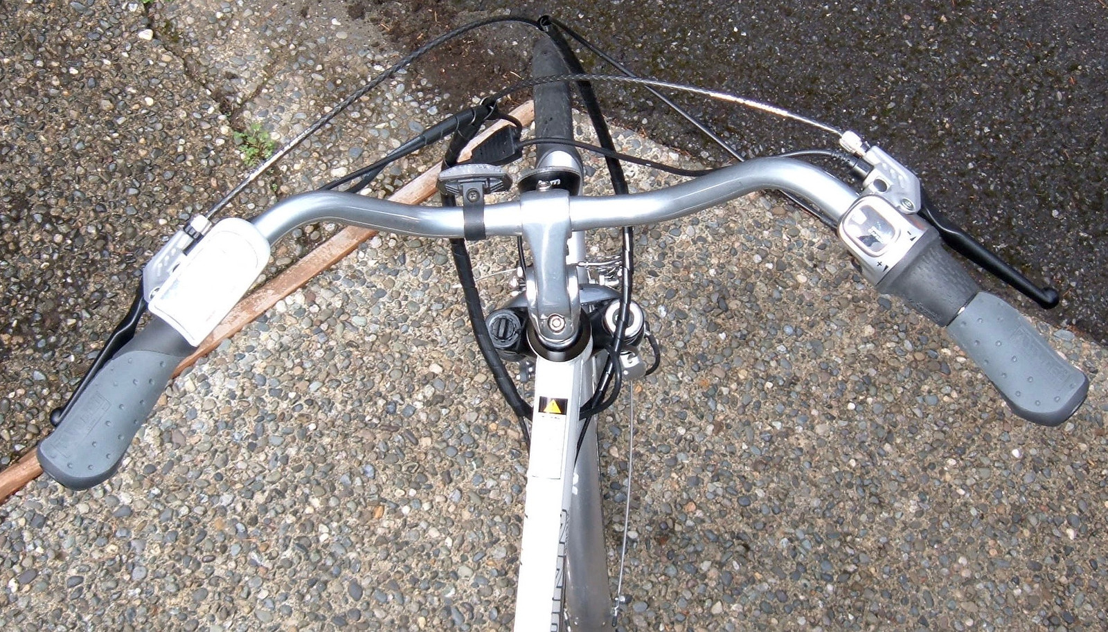 The handlebars are a bit unusual. For starters, they’re super swept back. They sweep back at a ~30 degree angle, which is very unusual for most bikes. They feel like they’re almost in your lap while riding, which is a weird feeling.