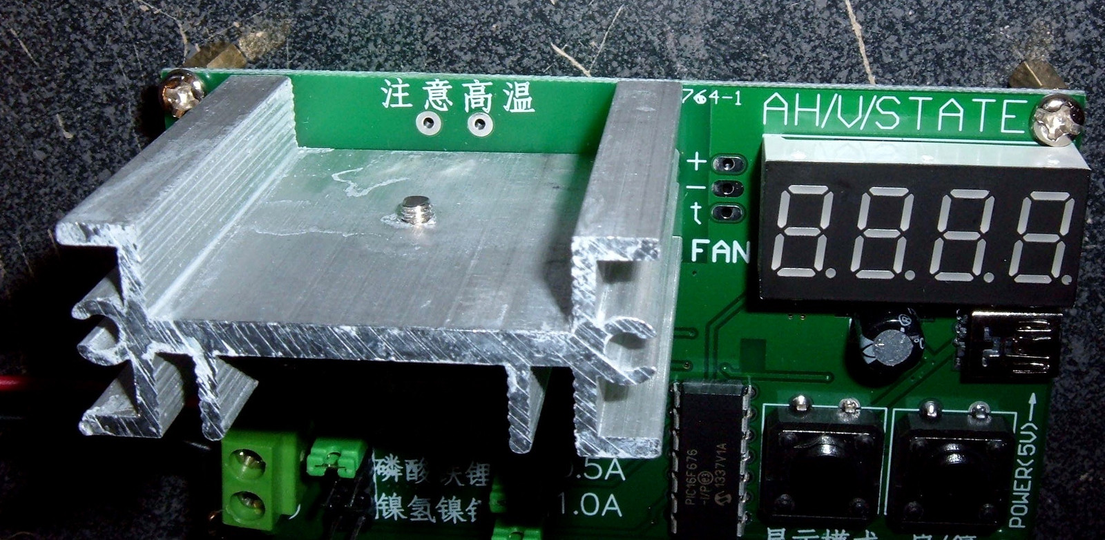 The radiator can handle a maximum of about 10W. While you could select 1.5A of current with a 12v battery, this would radically exceed the heat sink capabilities, so only select 0.5A. Caution: Heat sink will get hot. Use a fan. There is a fan header, but I’ve not played with it.