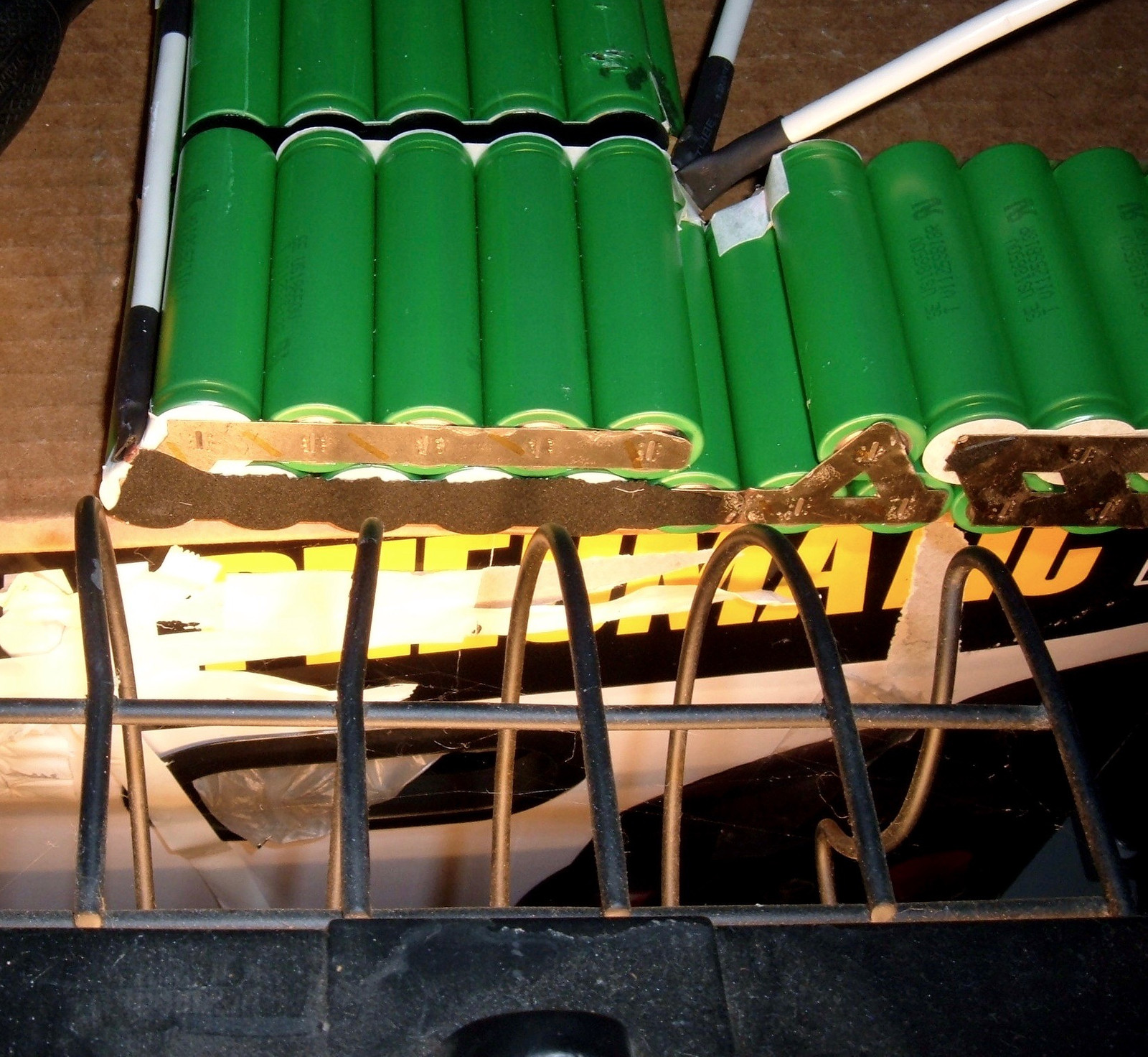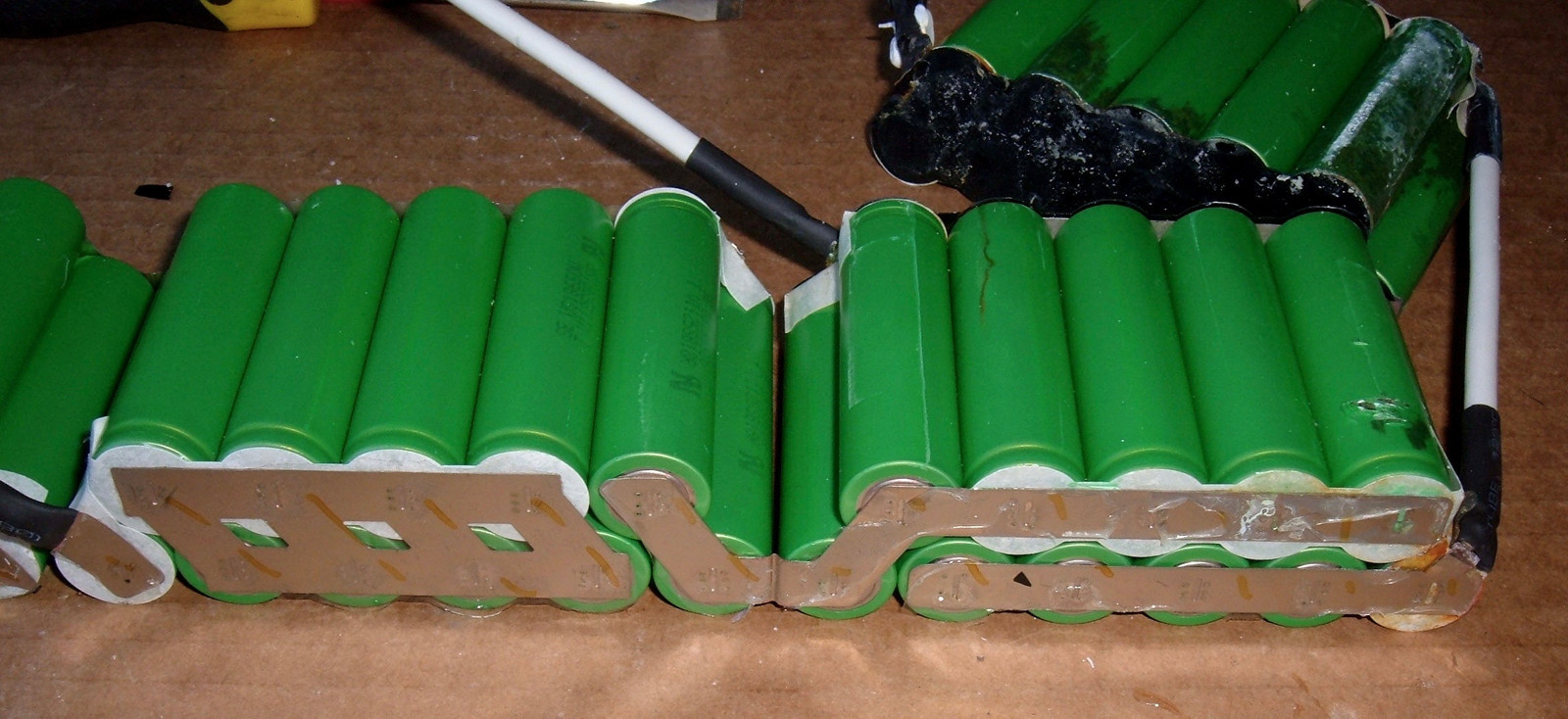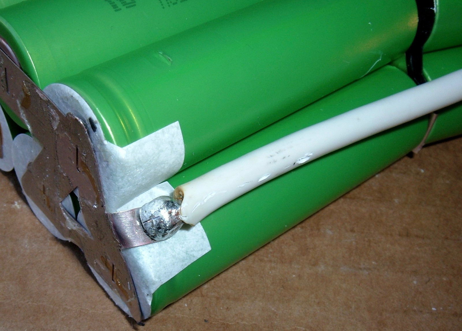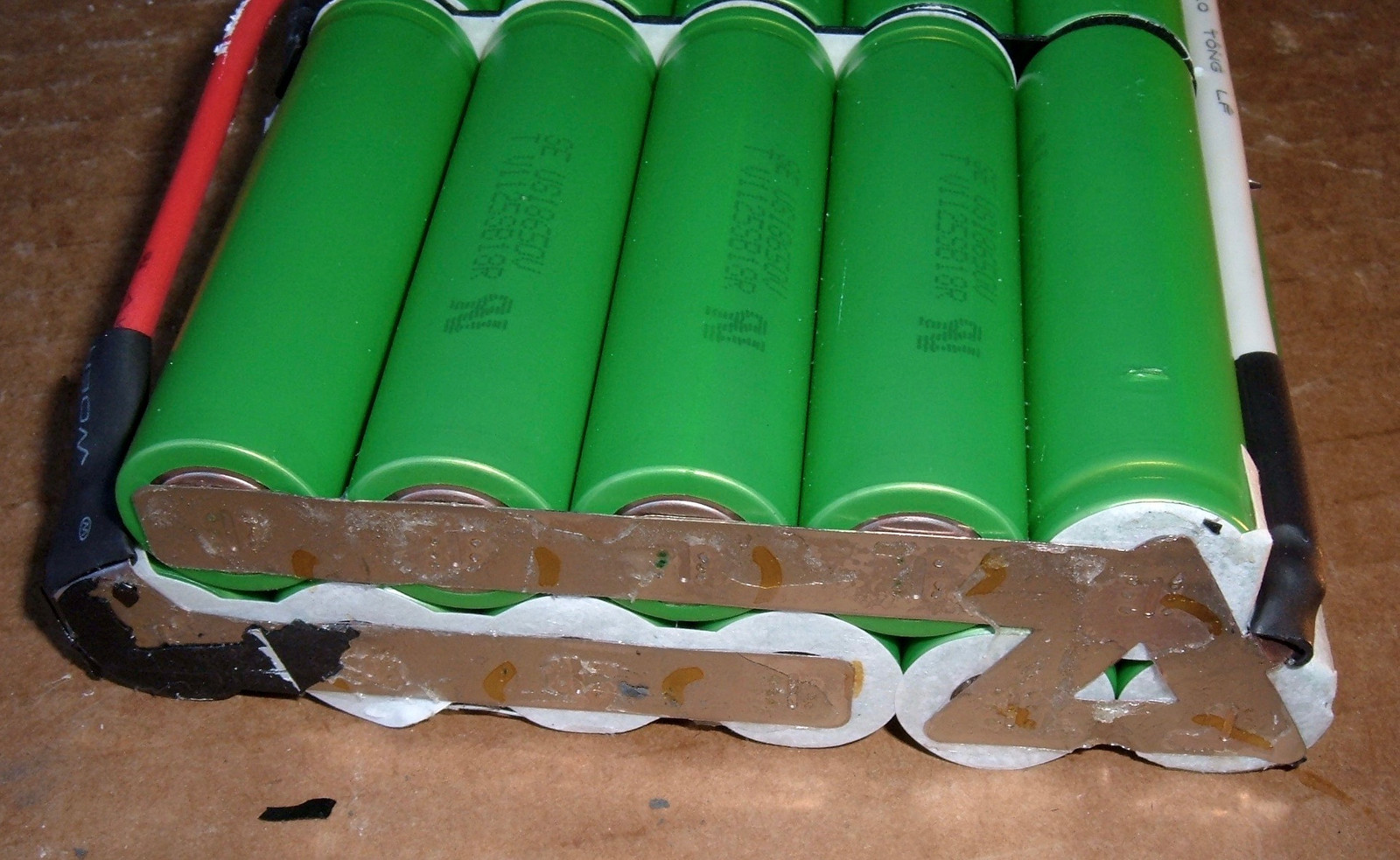 Also, you can (barely) see on the top cells that there’s a slit in the nickel strip over each cell. This improves the welding, and allows for a better weld joint with less current (as it forces all the current to go through the weld points and the end of the cell, instead of just bypassing through the strip).