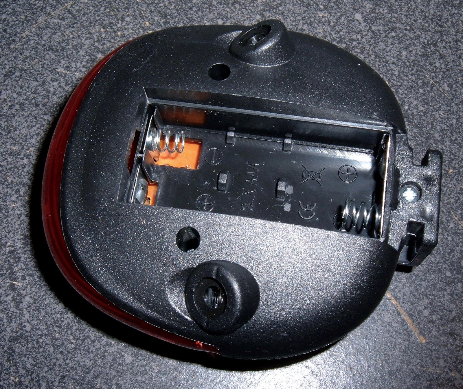 With the battery door off, two AAA batteries fit neatly inside. There are two screw holes on either side of the battery box, and one near the bike mount. It can’t actually be this easy to get apart, can it?