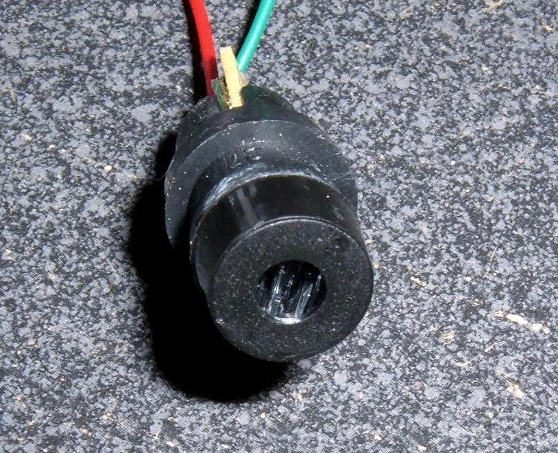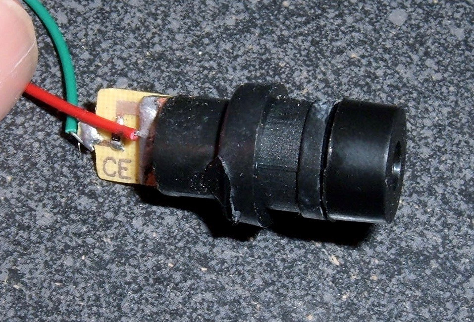 This is what the laser emitter looks like. A small board on the left, a tube in the center, and a lens on the right.