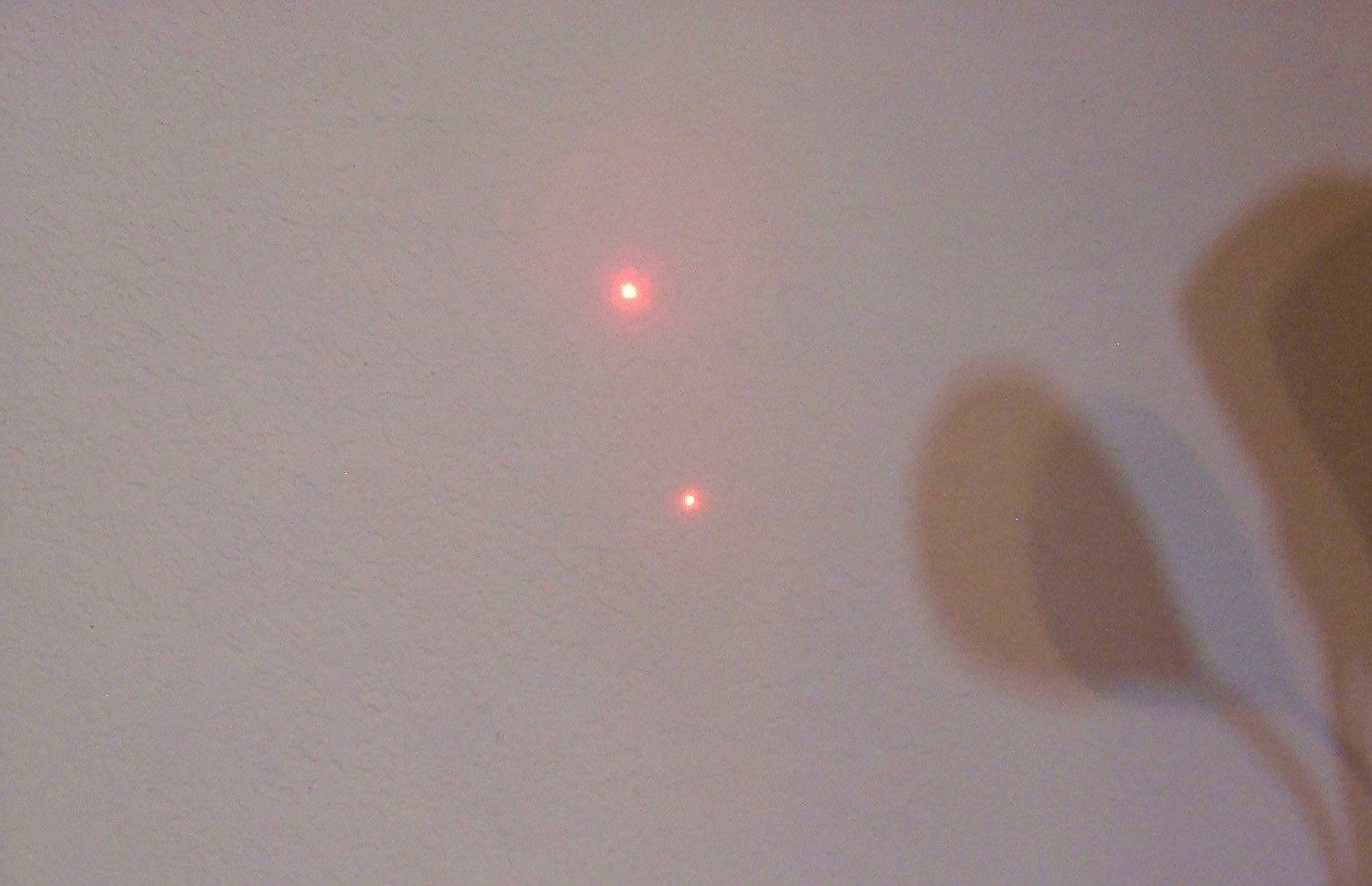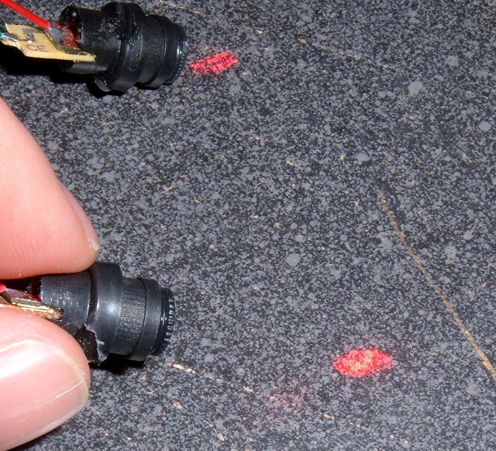 You might notice the top spot appears a bit dimmer. I… I might have been messing around with voltage a bit before I took this set of photos, and I might have damaged one of the laser emitters. Just a bit.