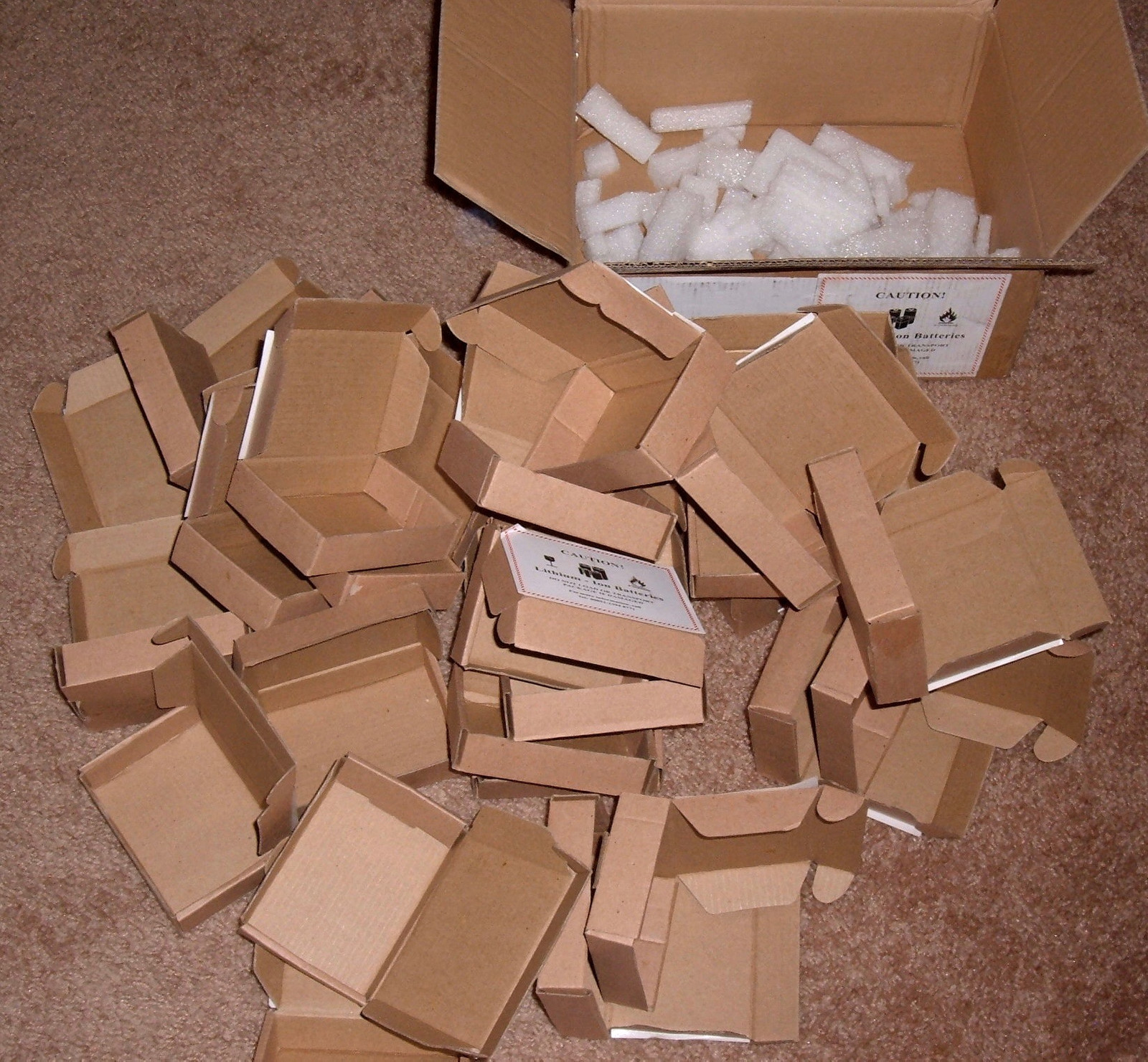 Each small box has two batteries and some padding material. The batteries are individually bagged.