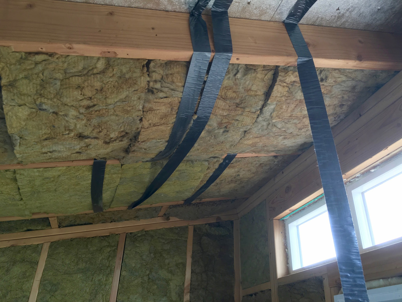 After a very successful 4 hours filling the walls with rock wool batts (and another few hours filling the window and door gaps with foam), I figured the ceiling would be quick and easy too! I couldn’t have been more wrong.