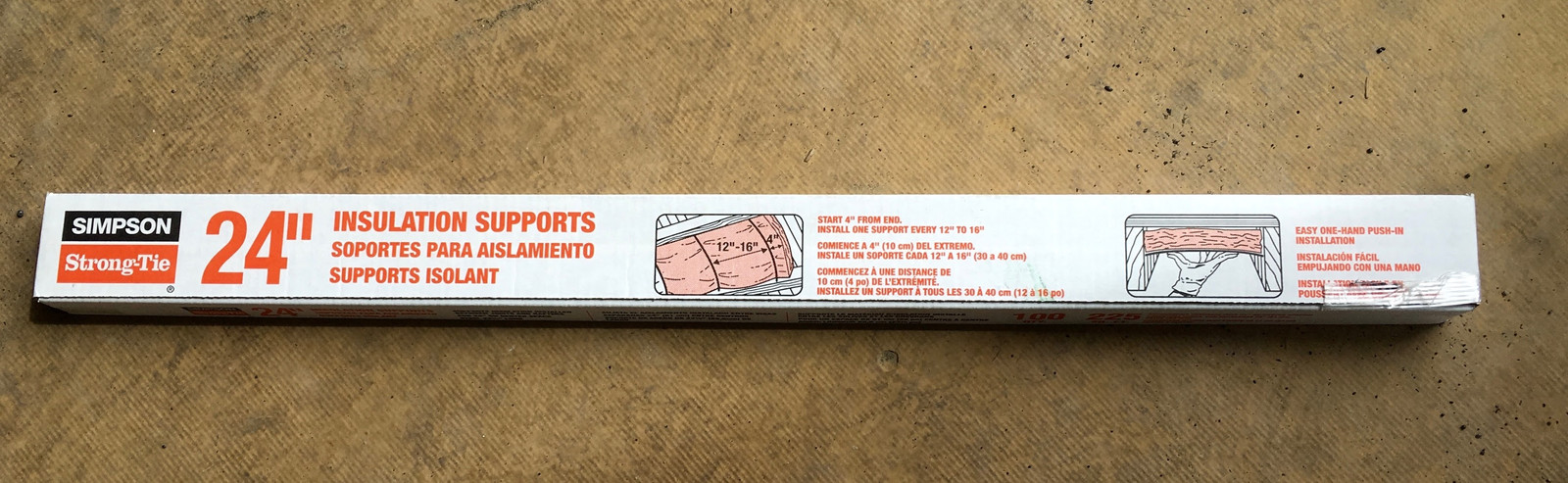 There exists a thing called “Insulation Supports.” They come in a box, and based on the name, promise to hold up insulation. They should work to hold up insulation, right?