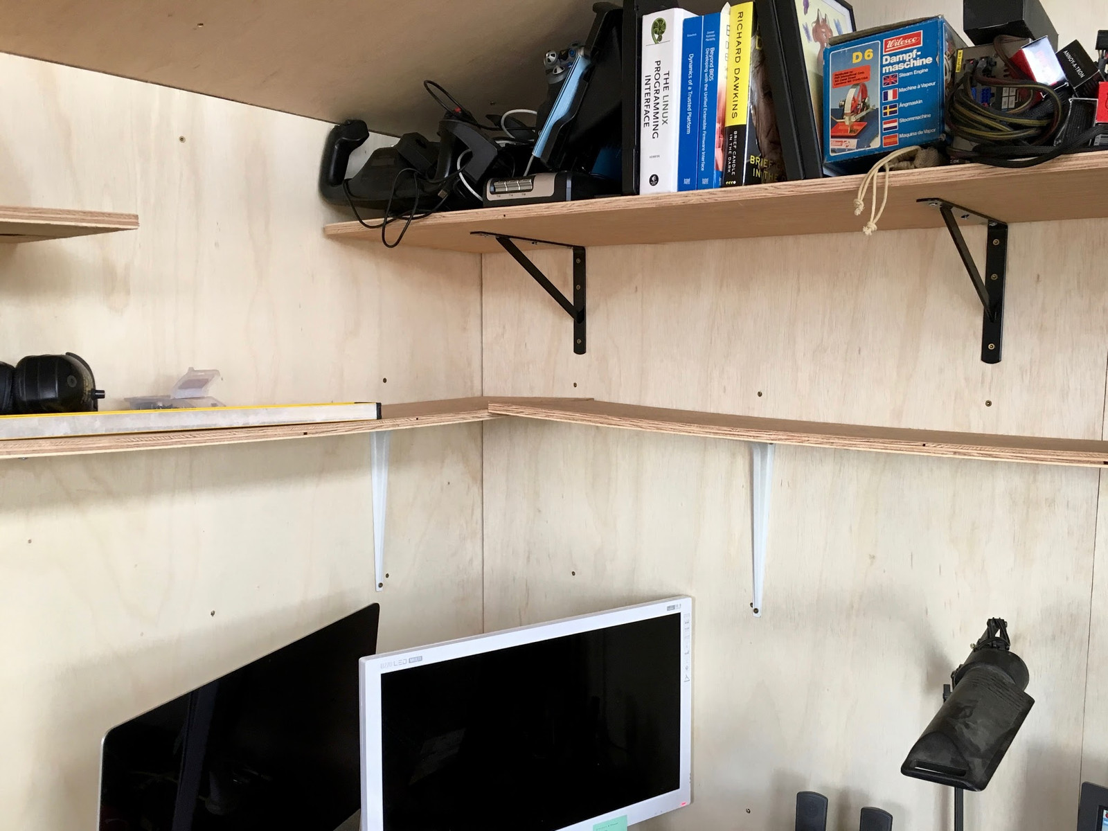This is a great space that’s working exactly as I hoped. I have plenty of space for a variety of projects, everything is reasonably tidy, and as it’s just me in there, the lack of space really isn’t a problem. It would even be possible to have one person working at the desk and the other at the bench, or, if I move some boxes, two people at the bench.
