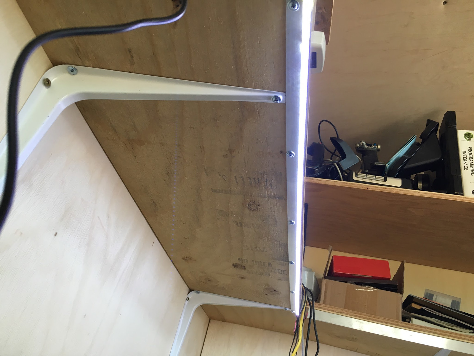 Right now, I only have the lights up over my desk, but I’ve got angle aluminum for a few more, and will be lighting the whole shed before winter.
