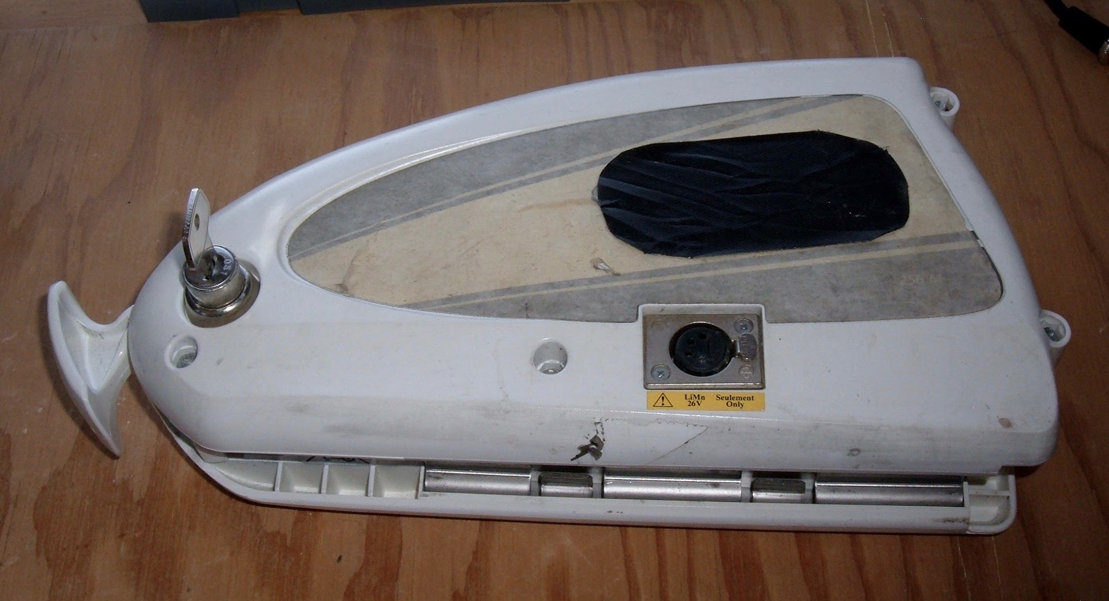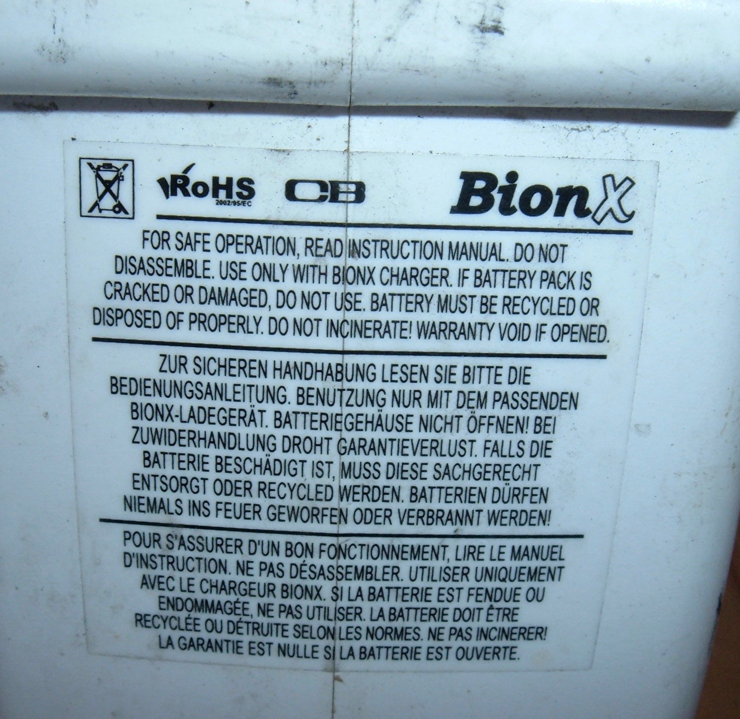 The battery pulls right out, and as usual for the older BionX batteries, there’s a very helpful label on it.