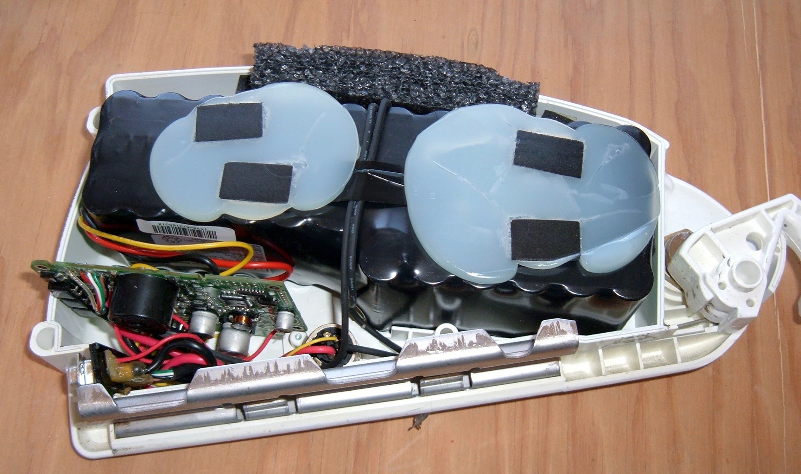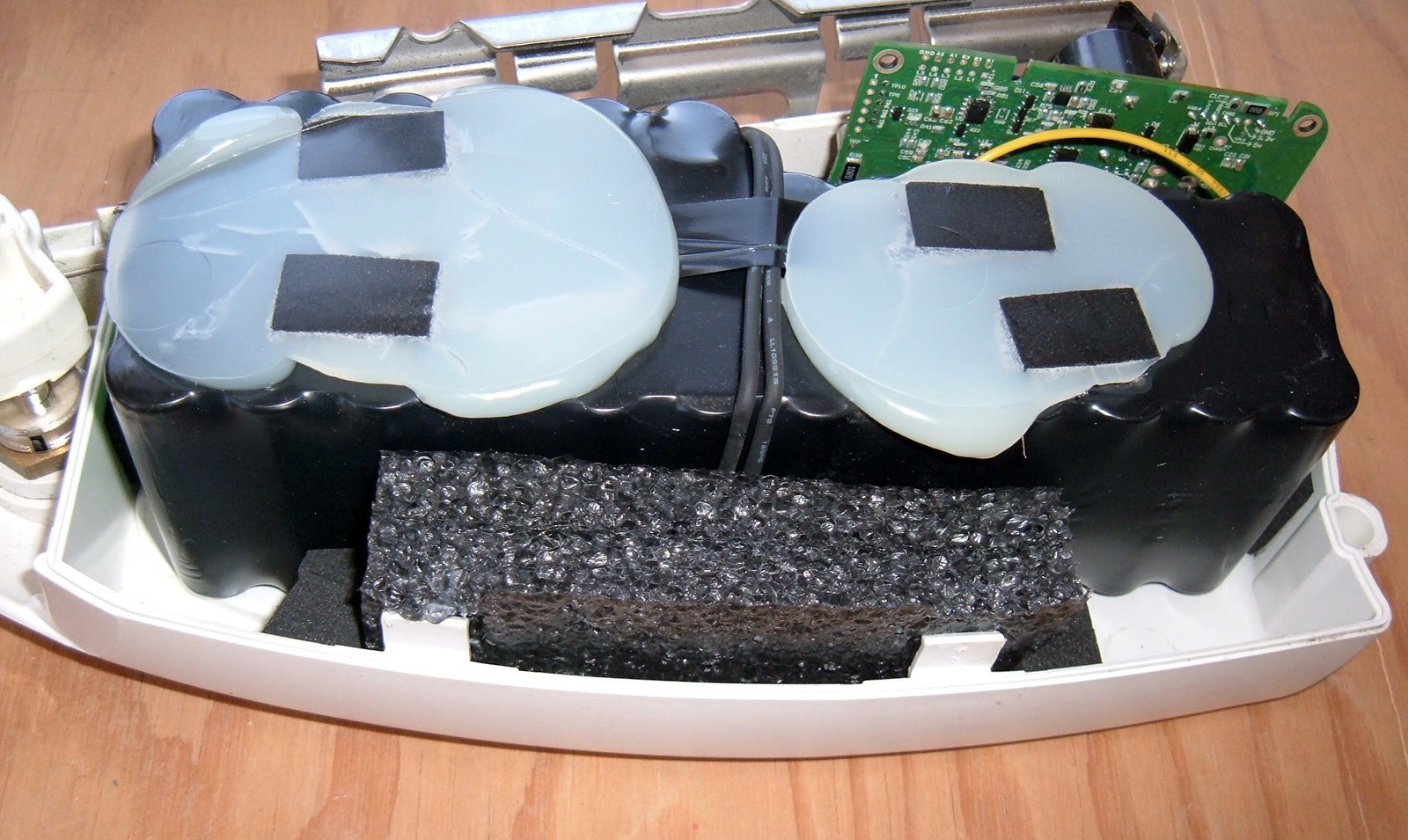 Further detailed investigation reveals that, yes, that’s just a block of open cell foam across the top, filling space and keeping the battery from rattling around.