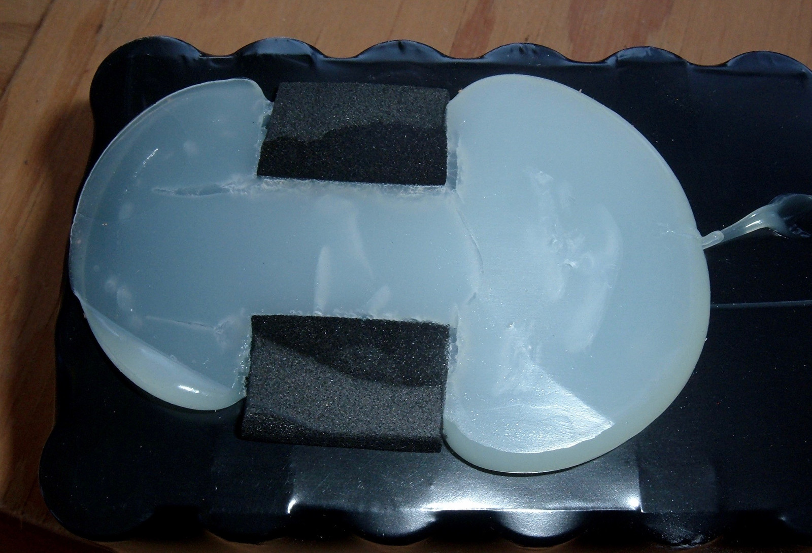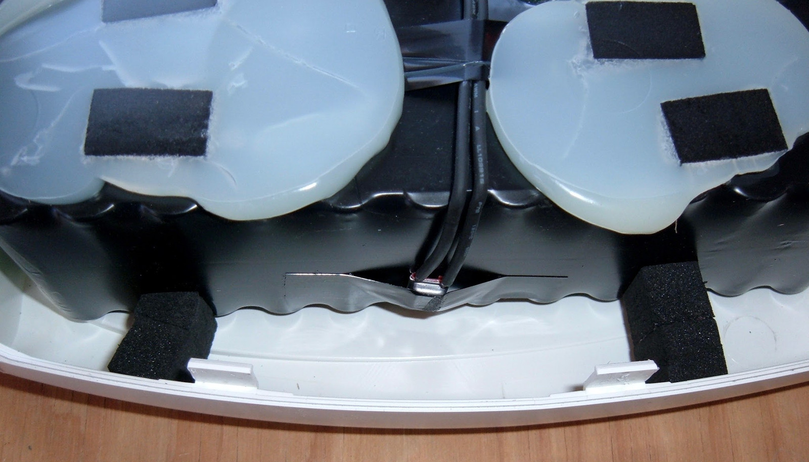 I’m not sure exactly what the caulk they use is, but it feels like a standard silicone caulk, and peels off easily enough. The combination of the foam spacers and the caulk keeps the battery solidly located, and gives it some shock absorption as well.