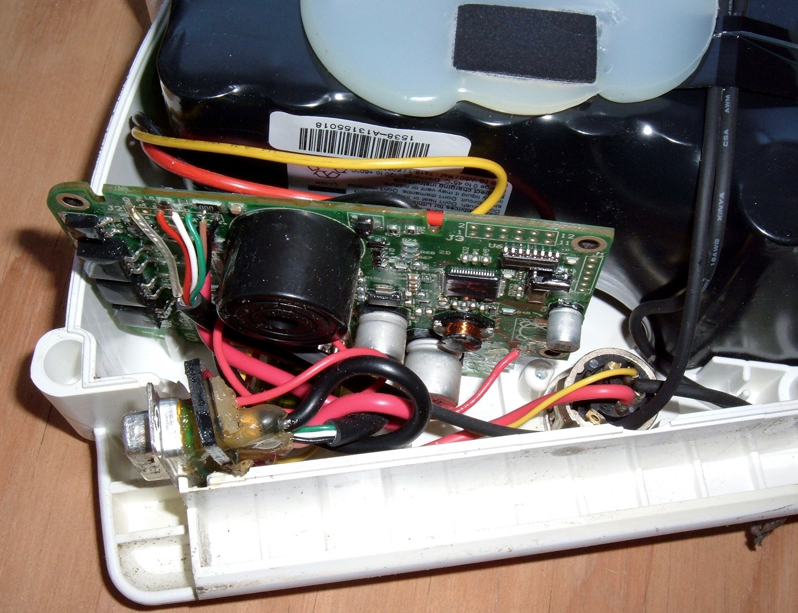 Inside, there’s the usual stuff. A battery, and the BionX BMS. All of this is routed (with wires, imagine that!) to the connector in the lower left corner.