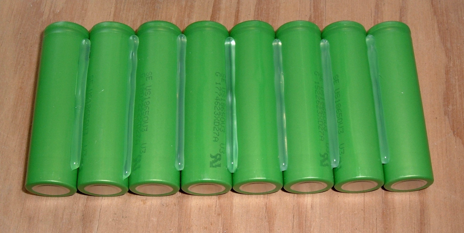 As I expected based on the fact that this is a BionX pack of 9.6Ah, it’s built around the green Sony US18650V cells - 1600mAh per cell, and capable of quite a few amps. I rebuild packs with Sony US18650V3 cells, which are the same chemistry but 2250mAh. However, I think I can cram a few more in this pack…