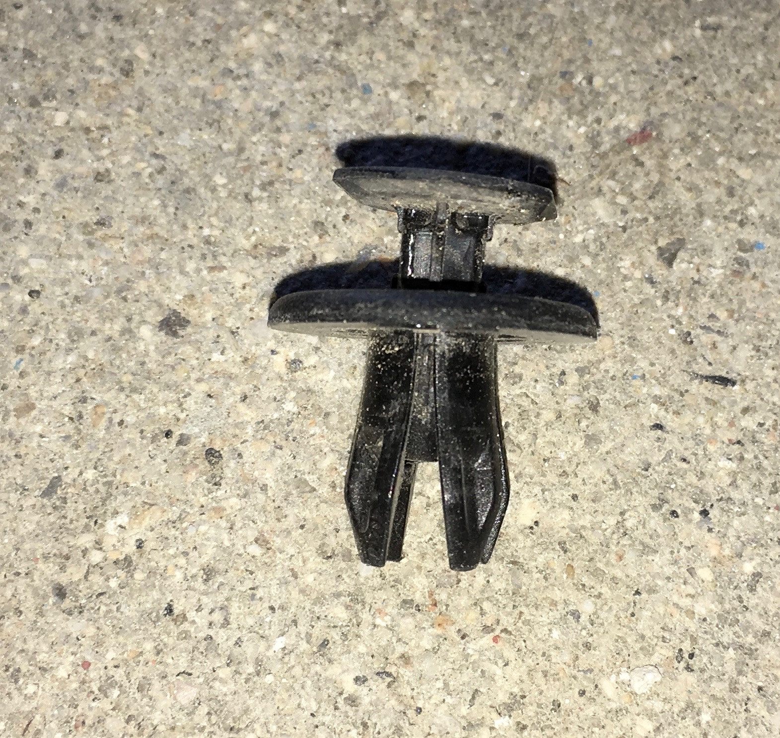 To remove the clip, you have to pull the stem out. This is most easily done with a flat head screwdriver, a warm clip, and patience. It’s not bad now - but in 20 years, these clips will shatter if you look at them wrong.