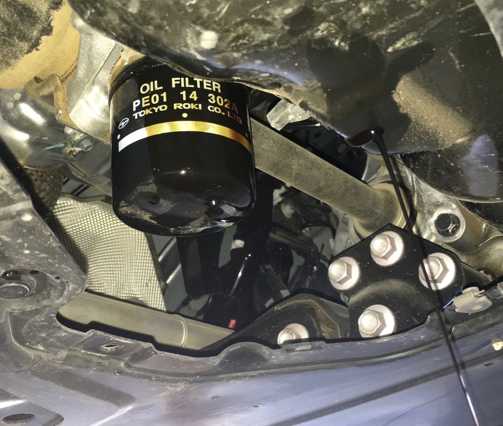 Things needed for a 2014/2015/2016 SkyActiv Mazda 3 oil change: 5 quarts 0W-20, 6 quarts if you’ve got the 2.5L motor and are a “top of dipstick” kind of person. A Wix 57002 filter. An 8mm wrench or socket, an 8mm hex driver (or Allen wrench), and a medium flathead screwdriver.