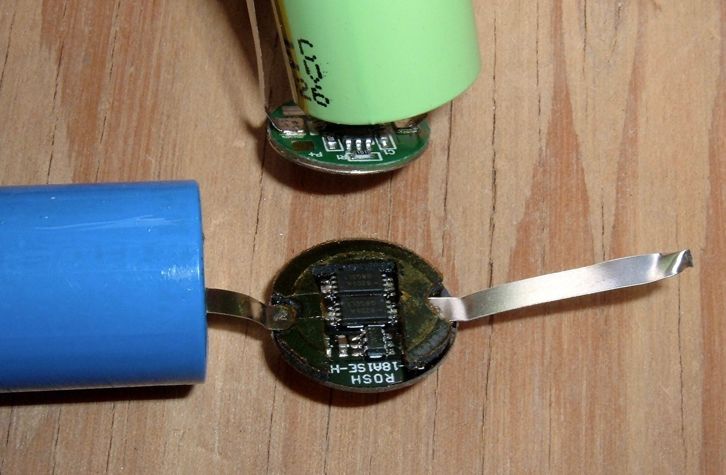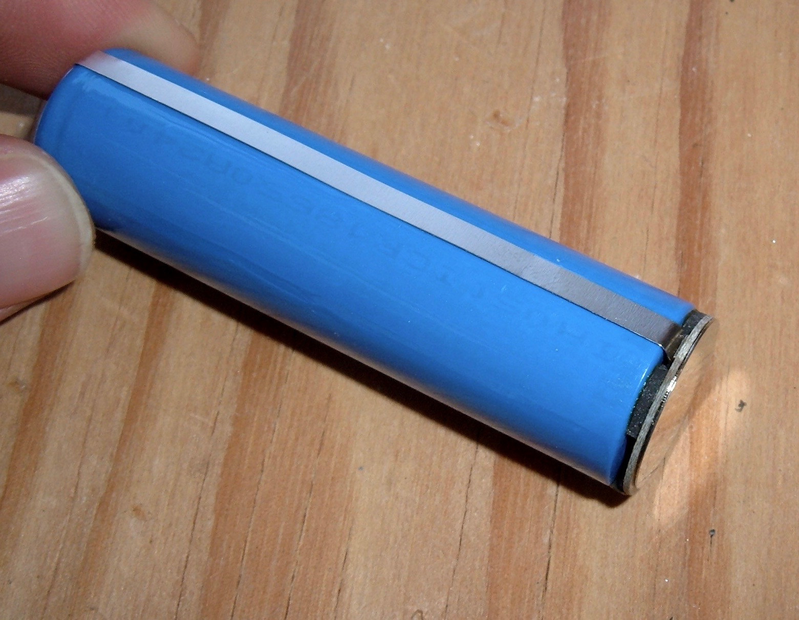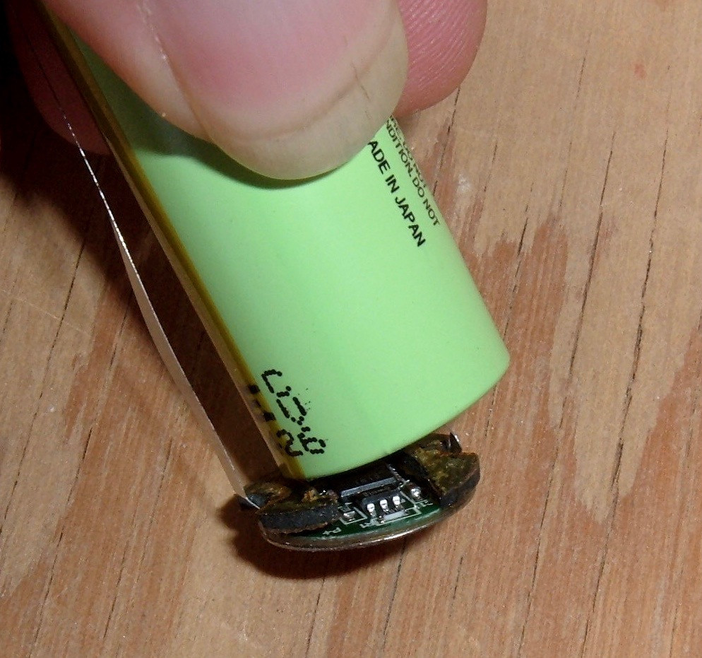 Recall that I pulled the fancy HexBright wrapper off the cell above - I’m left with this.