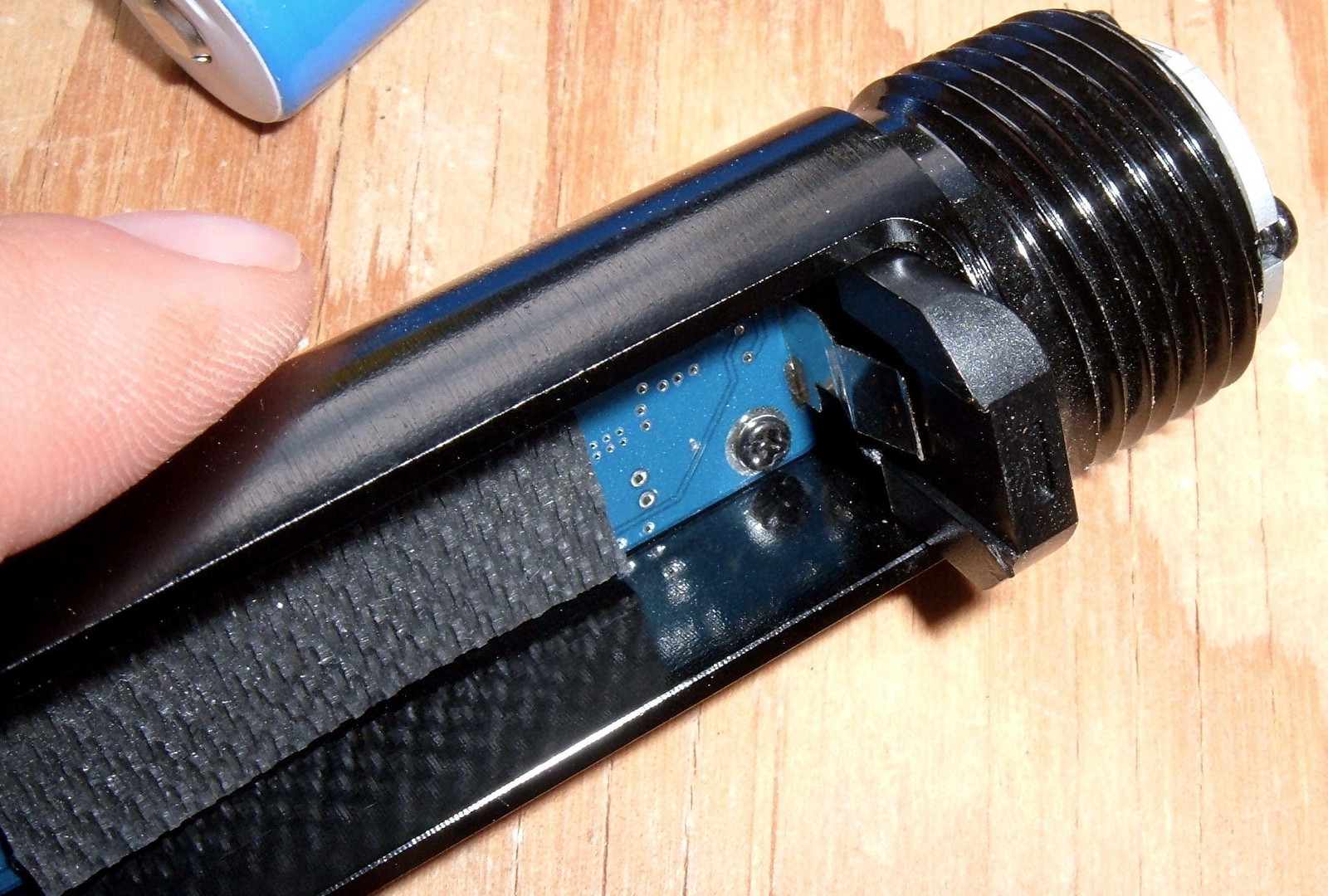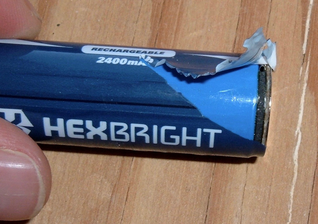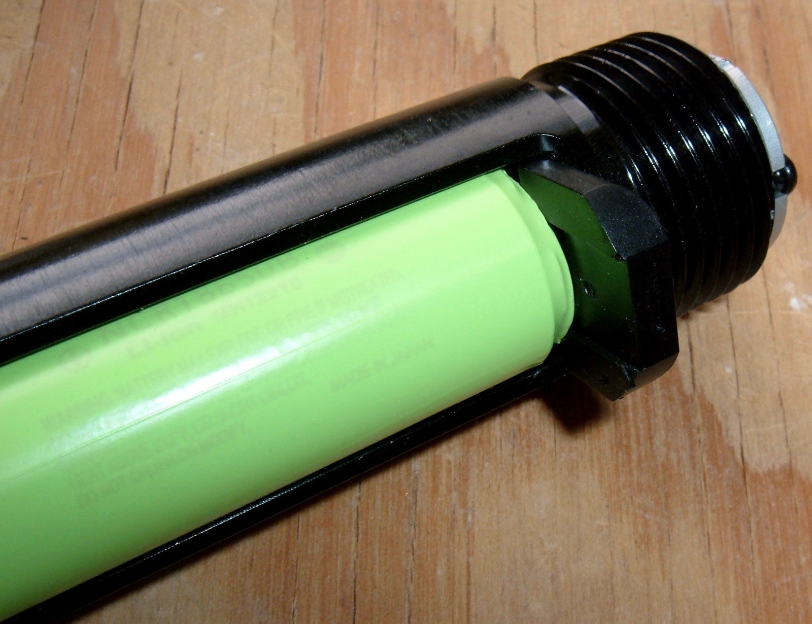 Recall that I pulled the fancy HexBright wrapper off the cell above - I’m left with this.