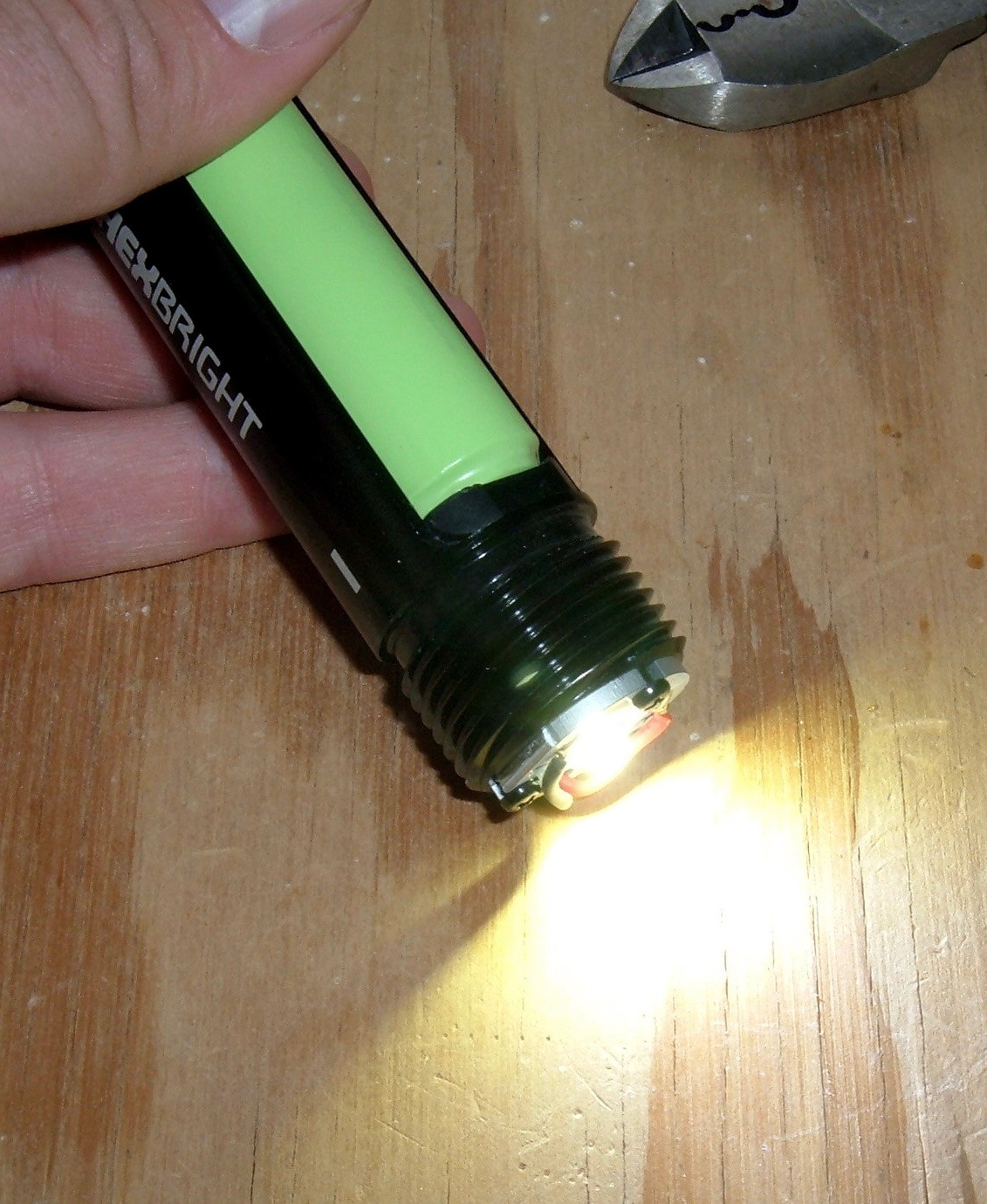 Protip for people with a HexBright: The bit of plastic behind the negative terminal comes out. It’s a wedge that one can remove and insert at will, which makes it easier to insert batteries.