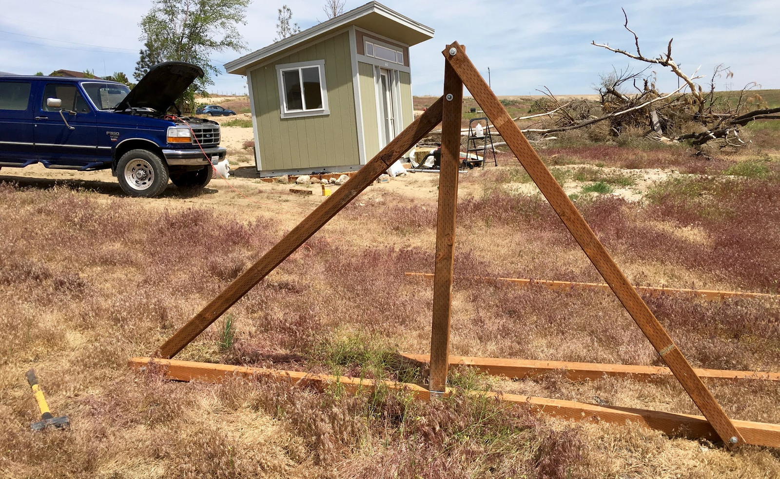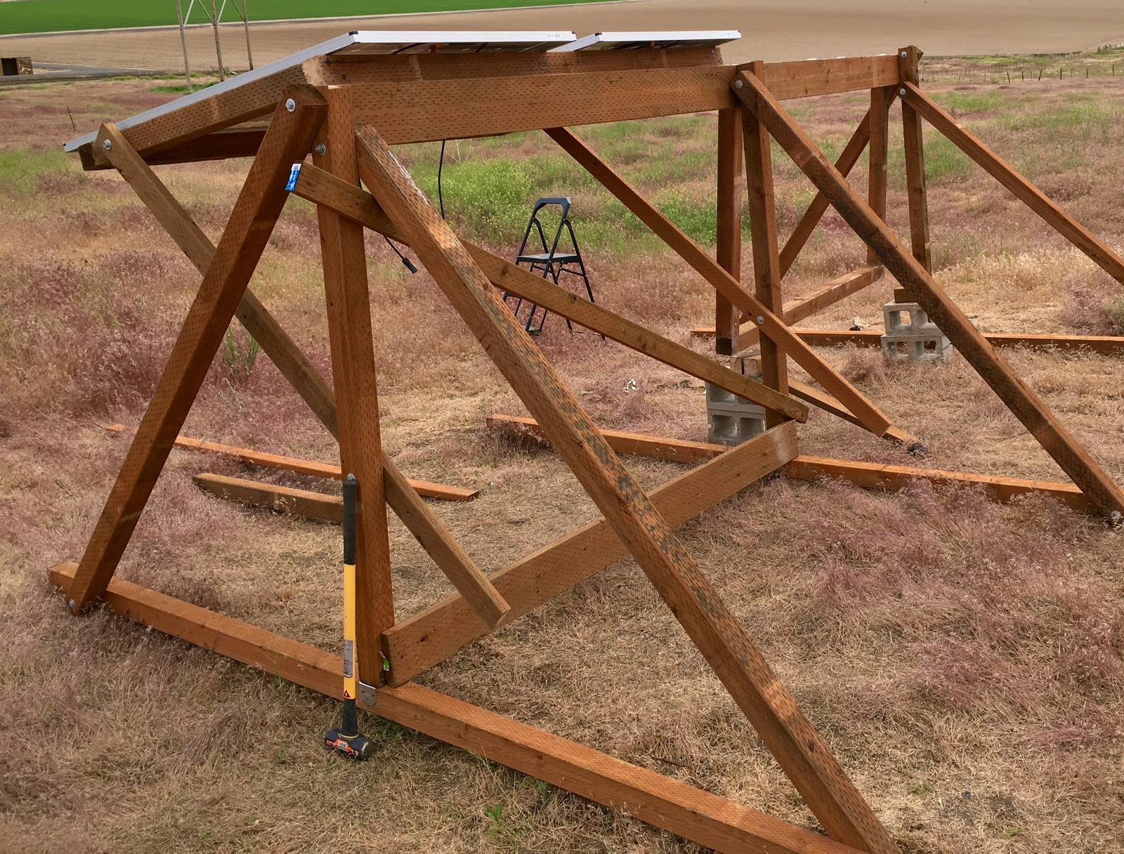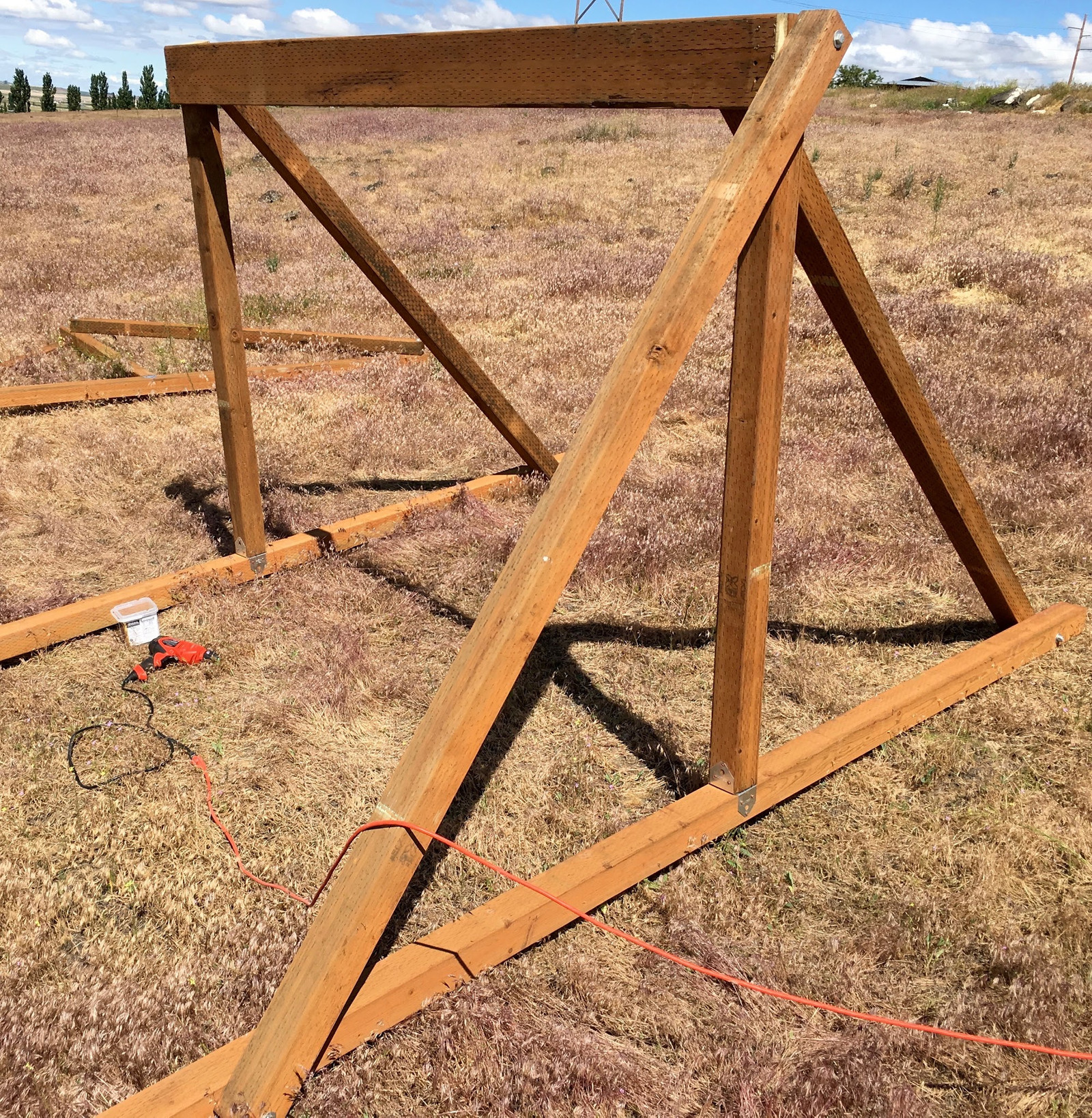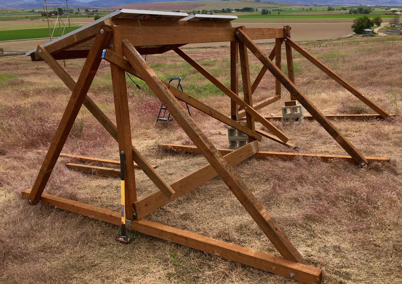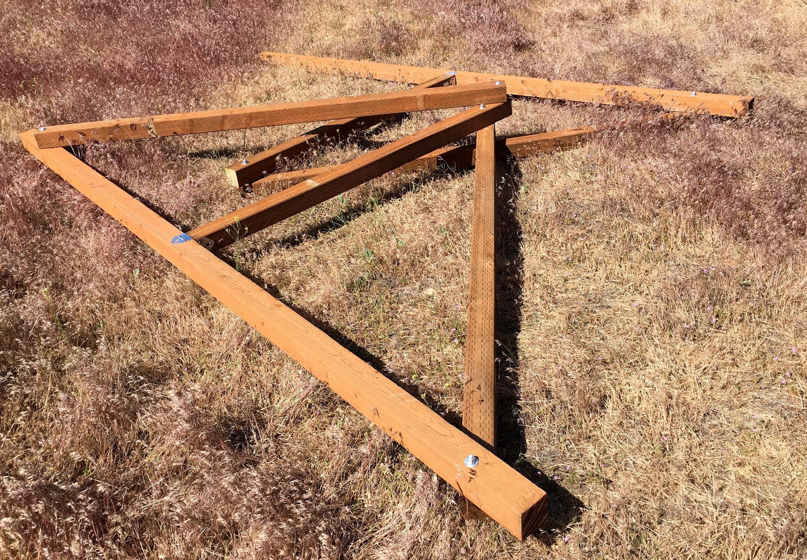 I built two full “A” ends, and one half-A for the middle support (no front post, to avoid shadowing the panels in the winter).