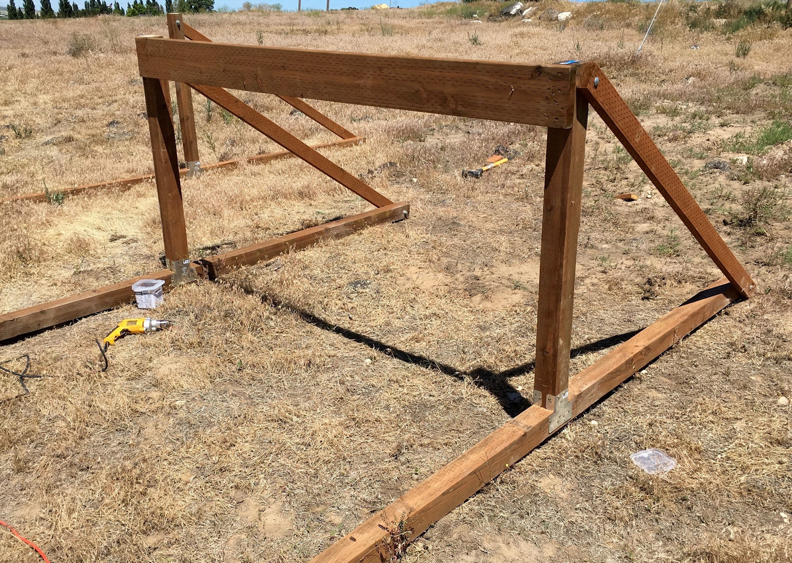The major difference in the bases here is that they’re lower (4’ instead of 8’), braced with 2x4s instead of 4x4s, and are only braced in the rear. Some analysis of how wood works indicated that I should be more than fine with the reduced strength - especially since, with the lower height, there’s a lot less potential torque on the frames.