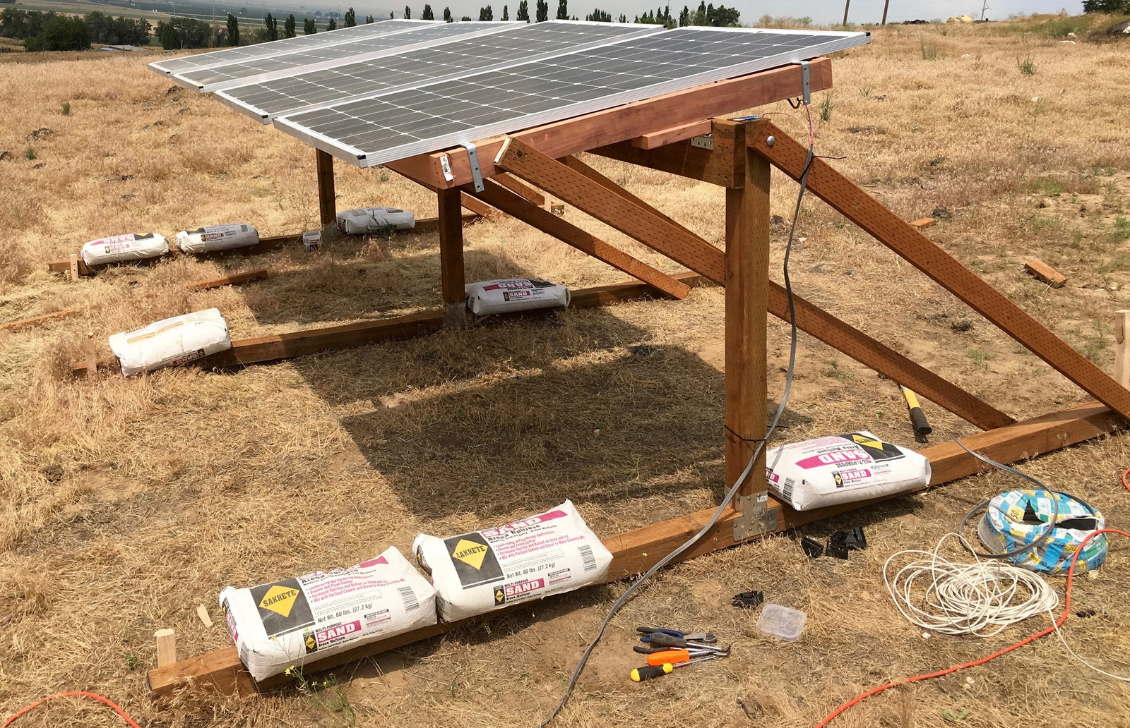 There are also problems with having pressure treated 4x4s secured against aluminum solar panel frames. I used some plastic to separate them, but it would be easier to not have the problem in the first place.