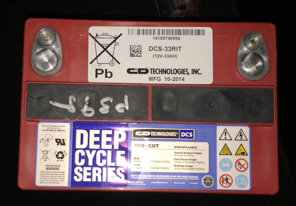 The battery is a C&D Technologies DCS-33RIT, at least in many of the cars. I don’t know if they’ve changed to a new battery or not on the brand new vehicles.