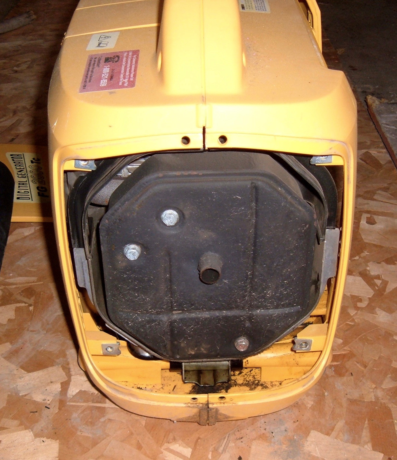 When it starts to come apart, pay attention to where the assorted rubber bushings and mounts go - there are a lot of them, and it takes time to puzzle out where they came from if all you know is that one just went bouncing across the floor. The inverter is rubber mounted, the fuel tank is rubber mounted, and the engine is rubber mounted (though that, at least, has metal rods through the bushings, so they should stay in place).