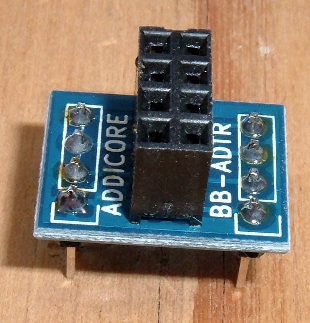 Adapters to the rescue! You can find useful little adapters like this for very little money that take a 4x2 connector and break it out wide enough that it can go in a breadboard, straddling the center. You will need one of these. They’re also convenient for NRF24L01 boards.