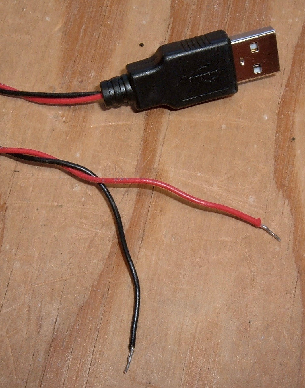 USB Cable. I use this for my 5V power (that gets regulated down to 3.3V). You can use an existing cable if you have one, or build such a thing yourself (what I do). If you’re dealing with stranded wire, you’ll need to solder the stripped ends to create a solid bit to insert.