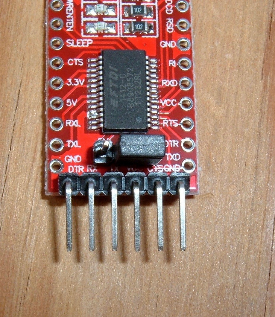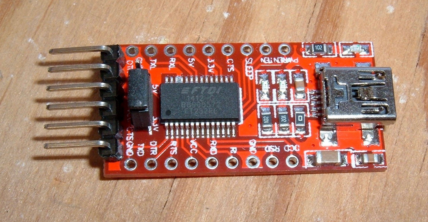 This is the USB to TTL serial adapter you’ll be using. The FTDI drivers are part of most modern operating systems, though you can find them easily enough if you need them for an older OS.