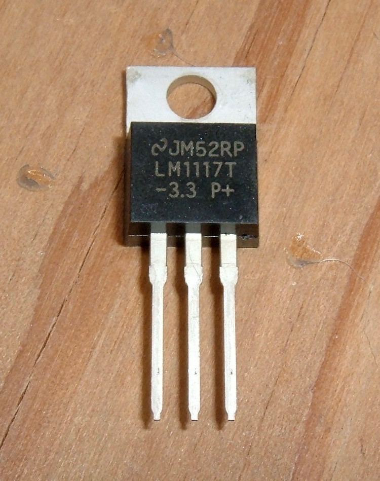 This is the voltage regulator I use - a LM1117T 3.3V regulator. They’re just a basic voltage dropping regulator that wastes the rest as heat, but going from 5V to 3.3V at a few hundred mA isn’t going to waste much energy. The left pin (-) is ground. The right pin (P+) is the input voltage (keep it below 20V, but 5V is perfect here), and the center pin (3.3) is the 3.3V output. Simple enough!