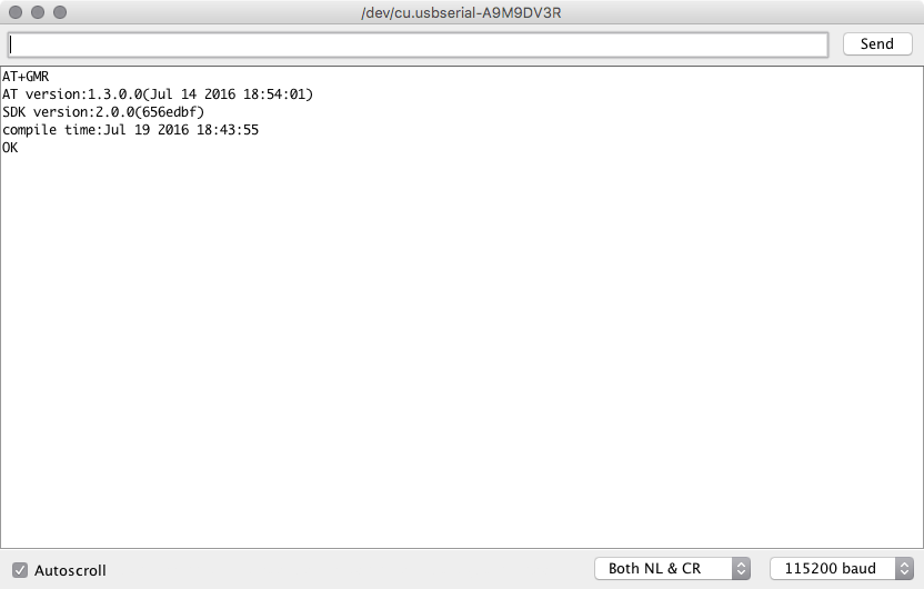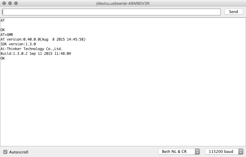 If you want to see the current firmware version, “AT+GMR” will give you these results. In this case, the firmware isn’t ancient, but it’s not recent enough for my tastes.